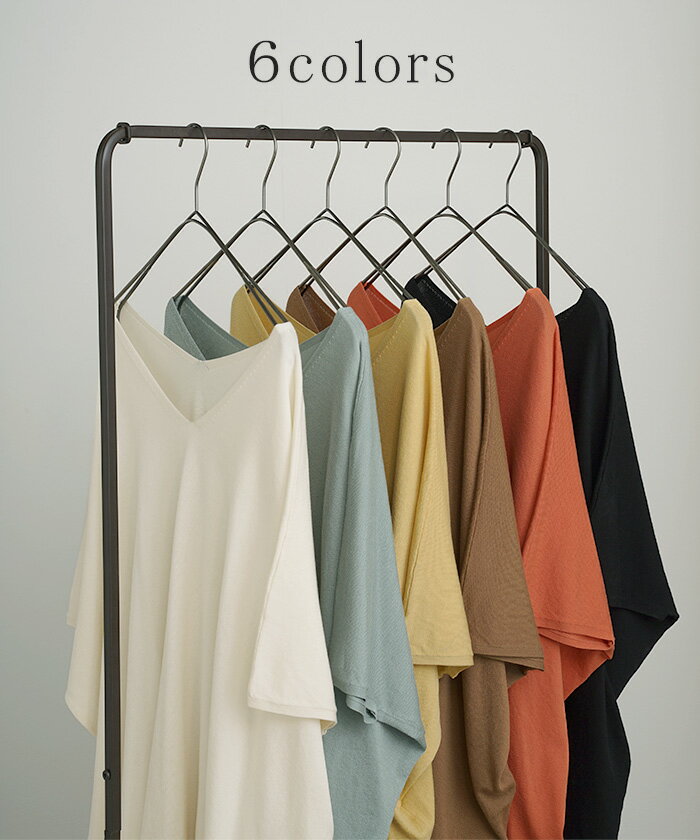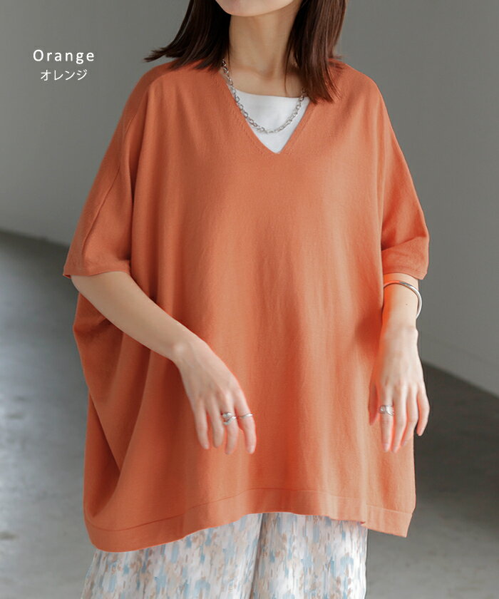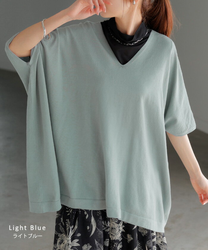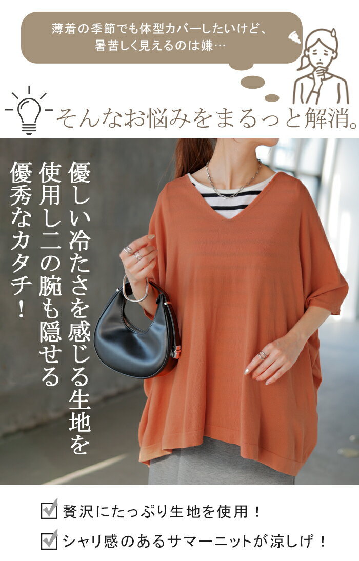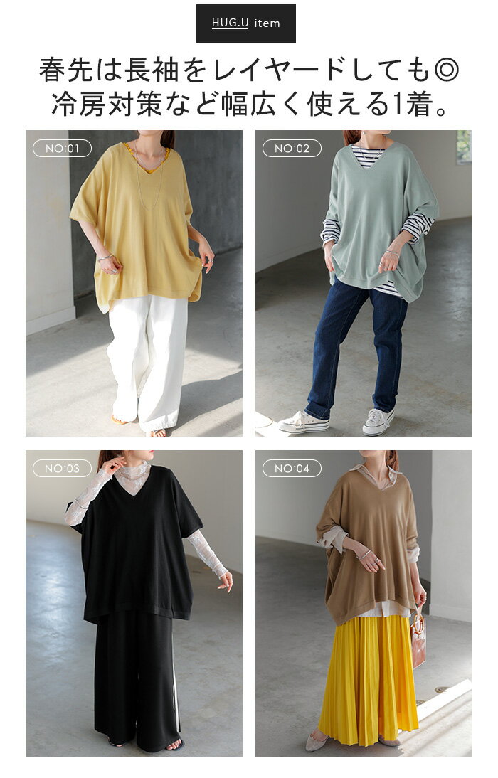 Tシャツ サマーニット 涼しい 【即納】 レディース トップス 半袖 ロング ティーシャツ チュニック セーター ビッグ プラスサイズ Vネック 長い ドルマン ドルマンスリーブ オーバー ゆったり 無地 体型カバー お尻が隠れる 大きいサイズ 白 黒 春 夏 HUG.U