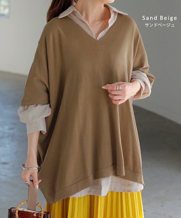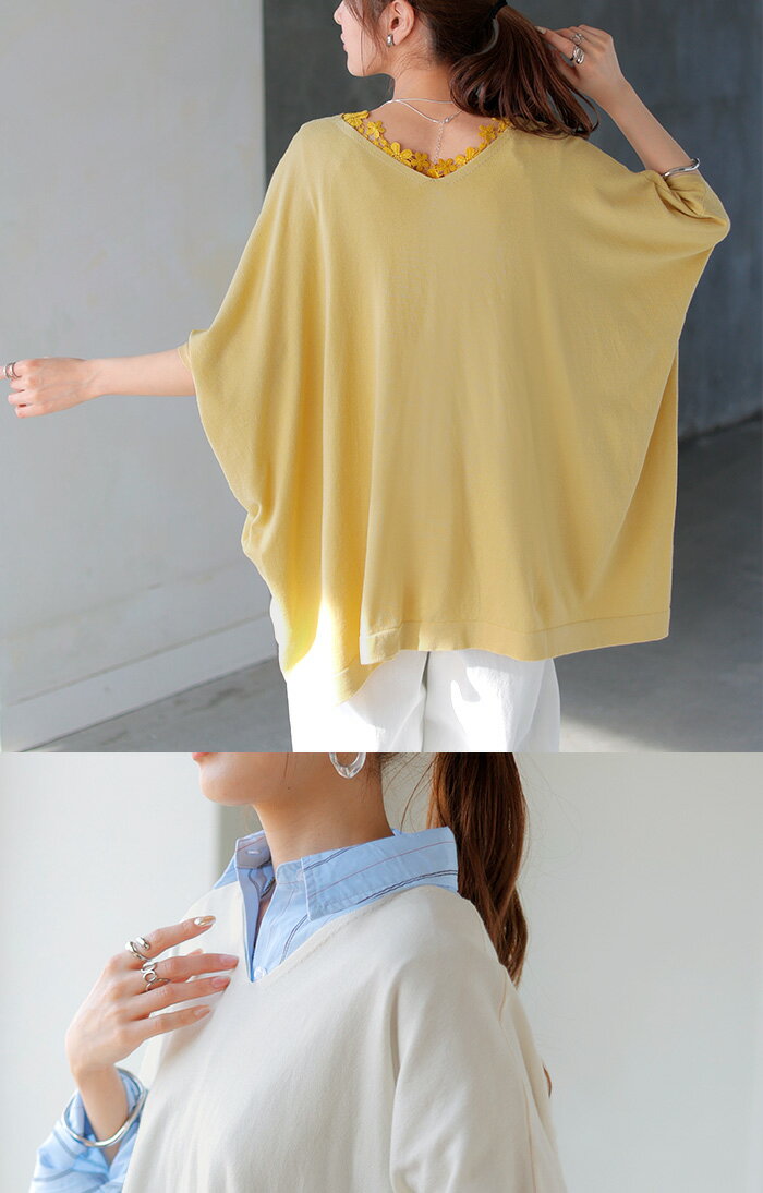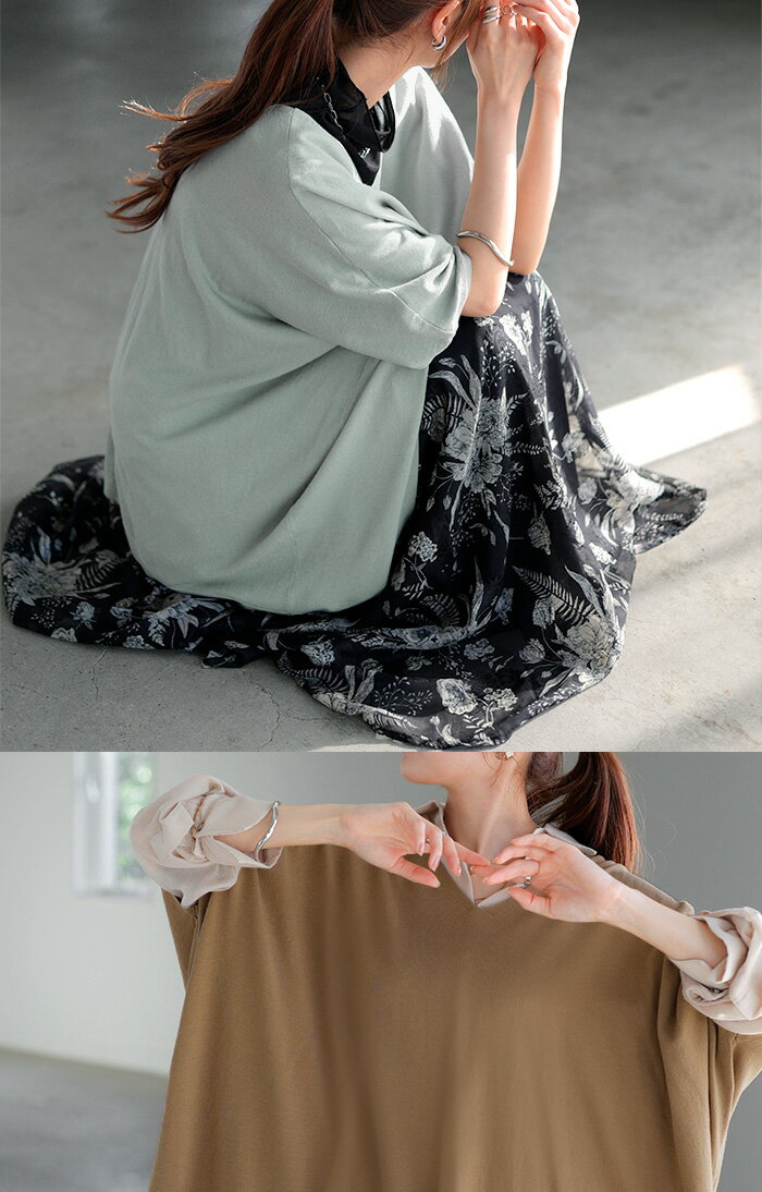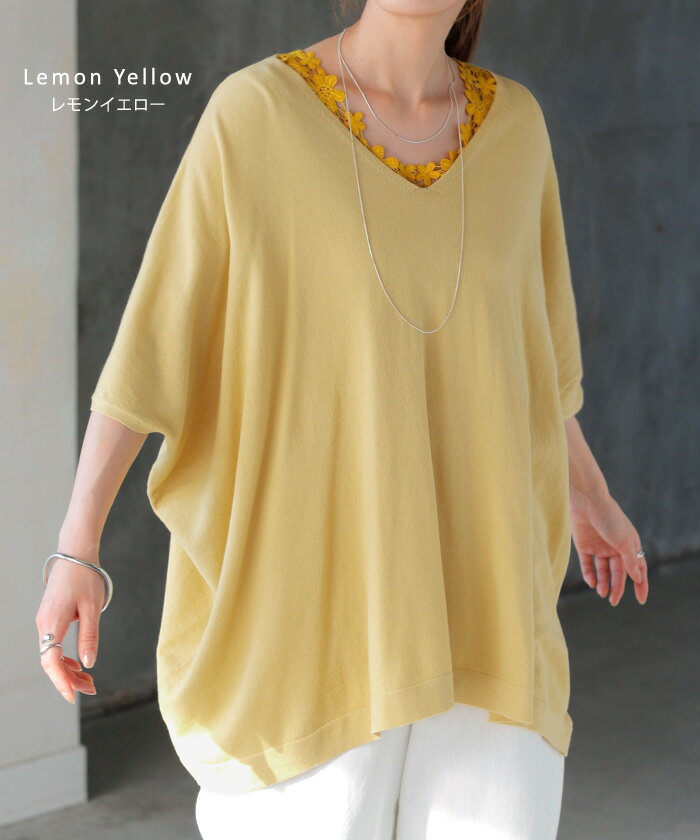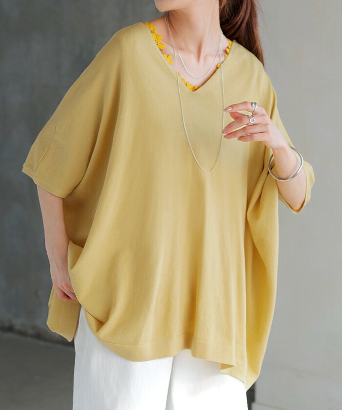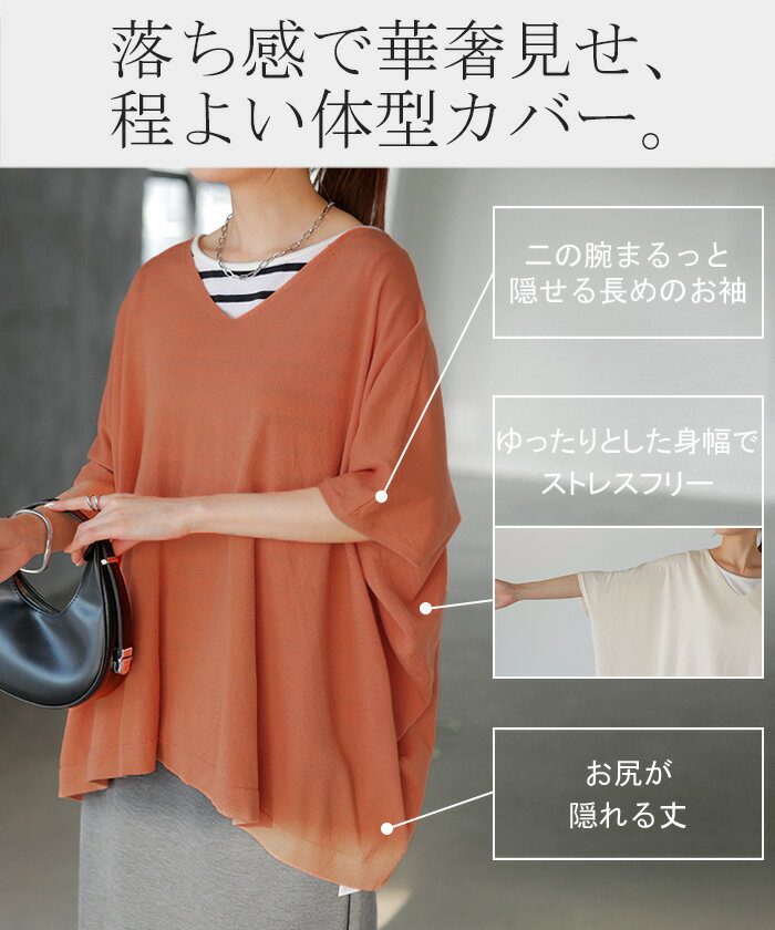 Tシャツ サマーニット 涼しい 【即納】 レディース トップス 半袖 ロング ティーシャツ チュニック セーター ビッグ プラスサイズ Vネック 長い ドルマン ドルマンスリーブ オーバー ゆったり 無地 体型カバー お尻が隠れる 大きいサイズ 白 黒 春 夏 HUG.U