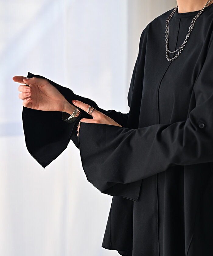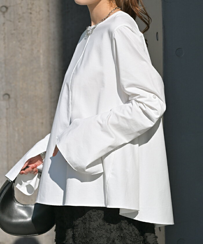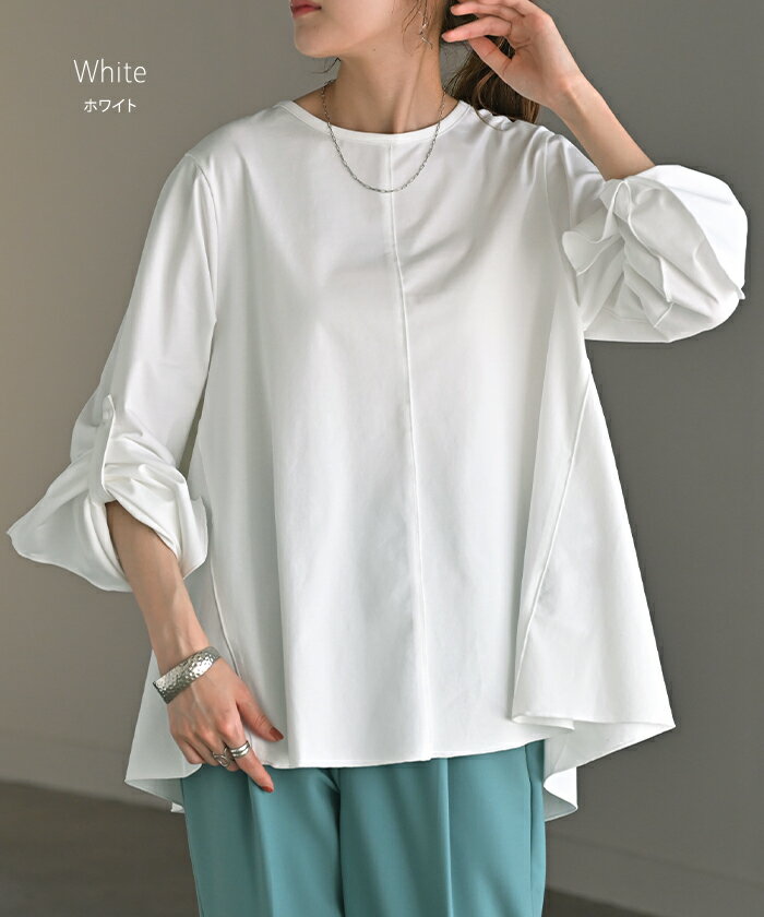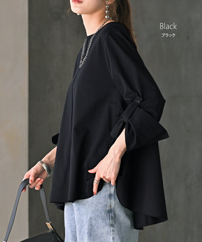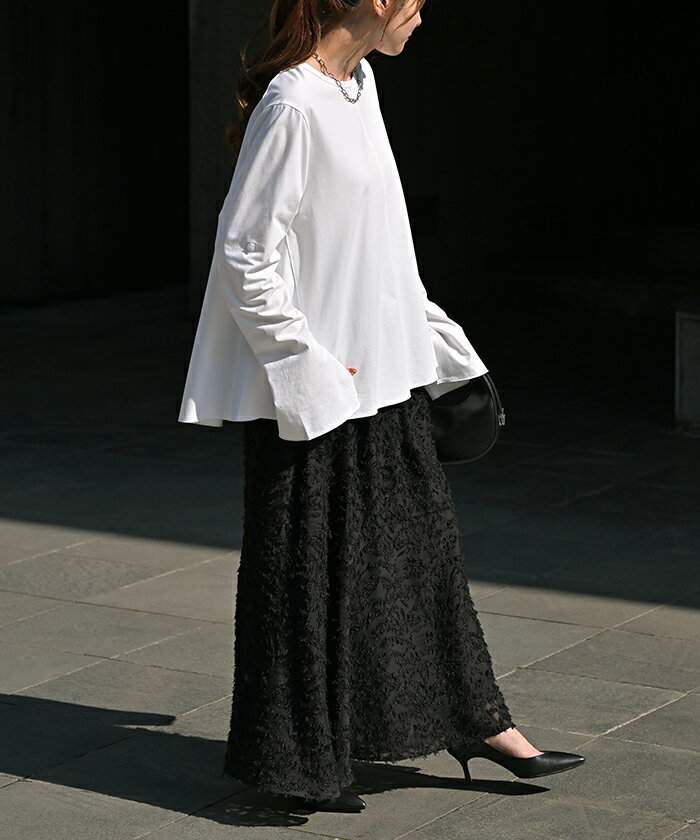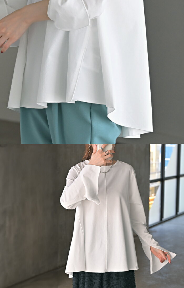 ロンT レディース ブラウス 【即納】 トップス 長袖 Tシャツ カットソー ロング フレア袖 ティーシャツ チュニック ビッグ プラスサイズ クルーネック 長い ドルマン ゆったり 無地 体型カバー お尻が隠れる 大きいサイズ おしゃれ 白 黒 春 夏 HUG.U