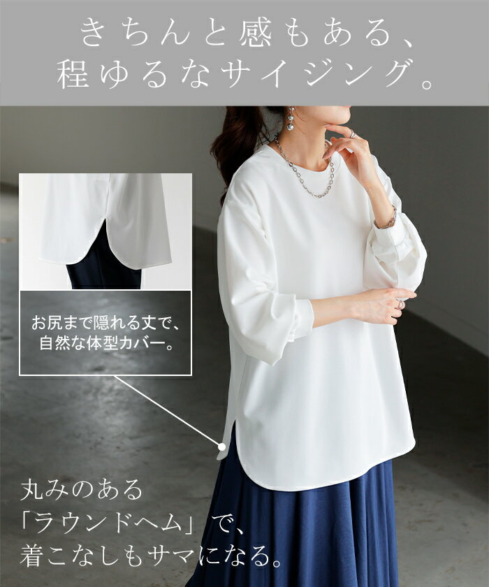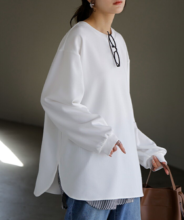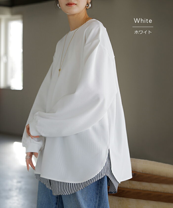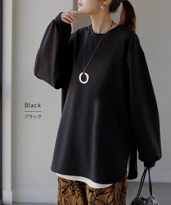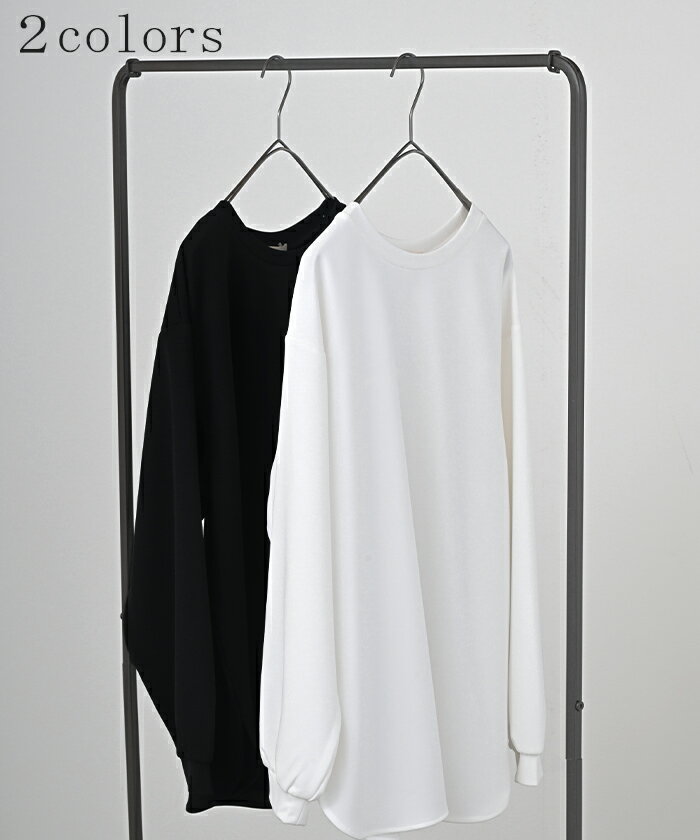 ロンT ブラウス レディース ■5月中旬入荷 トップス シャツ 長袖 Tシャツ カットソー ロング ティーシャツ チュニック プラスサイズ クルーネック 長い ドルマン ドルマンスリーブ ゆったり 無地 体型カバー お尻が隠れる 大きいサイズ おしゃれ 白 黒 春 夏 HUG.U