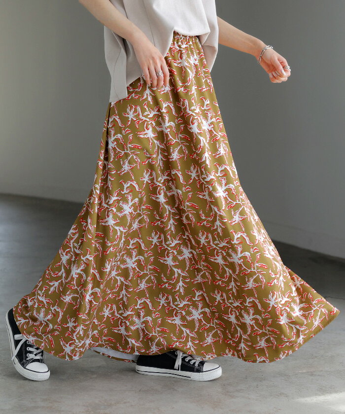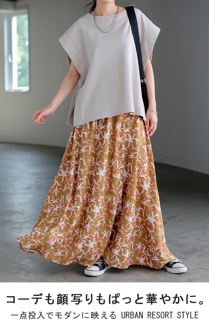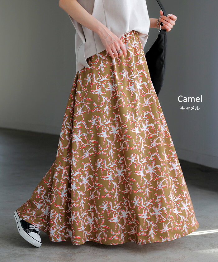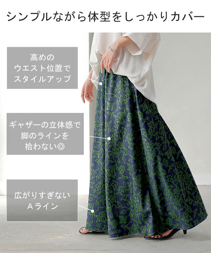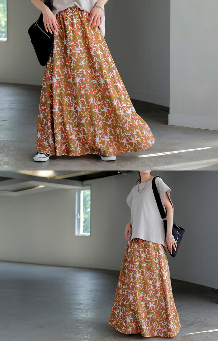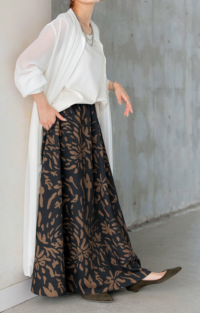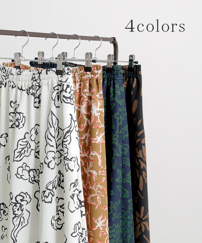 スカート 柄 ロング 【即納】 Aライン レディース ロングスカート 総柄 ボトムス ボトム フレア フレアスカート マキシ マキシスカート シワになりにくい ウエストゴム ポケット 無地 長い ゆったり きれいめ ハイウエスト おしゃれ 黒 白 春 夏 HUG.U