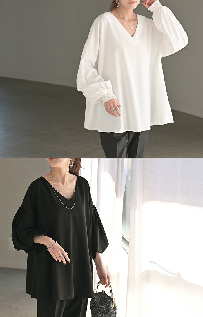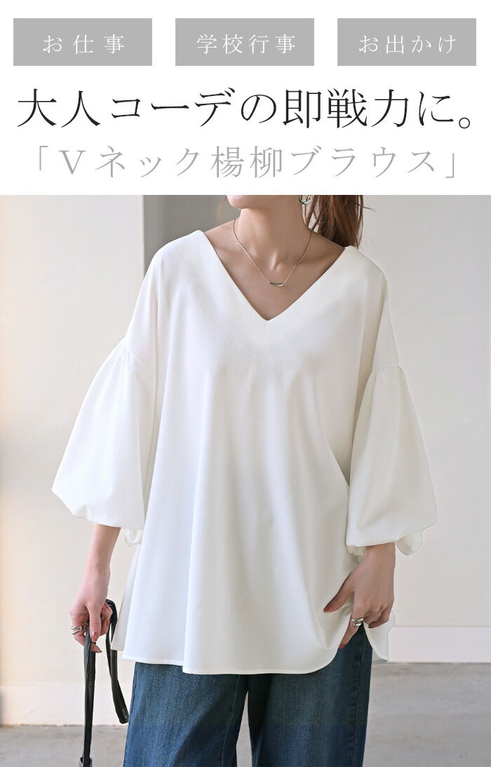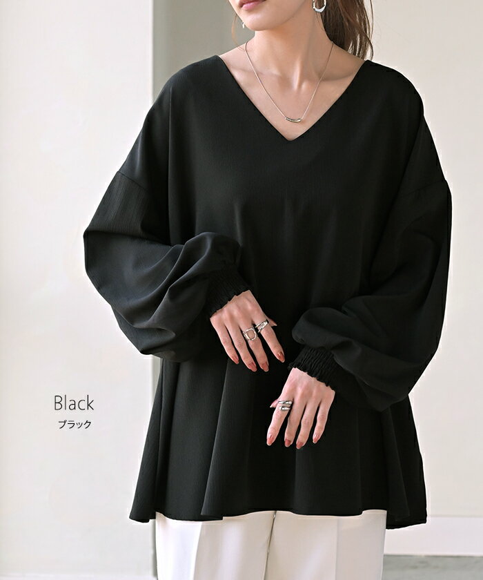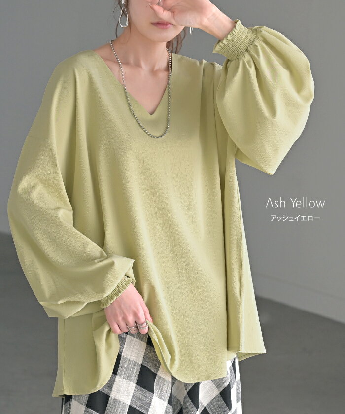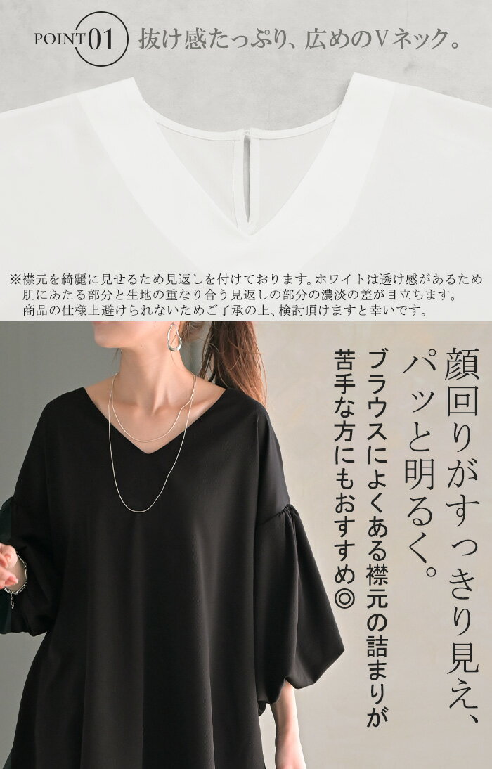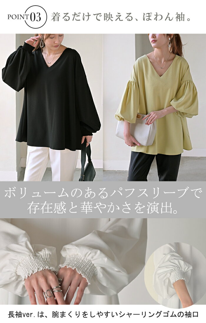 【SALE】 シャツ 『 選べる 袖丈 』 【即納】 楊柳 レディース トップス ブラウス ロング ロングシャツ チュニック Vネック シワになりにくい 長袖 半袖 無地 ボリュームスリーブ ゆったり 大きいサイズ 体型カバー お尻が隠れる きれいめ 黒 白 春 夏 HUG.U