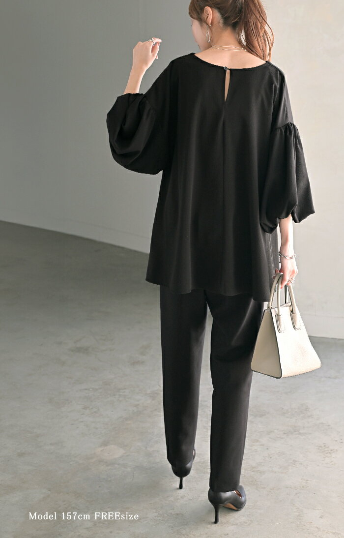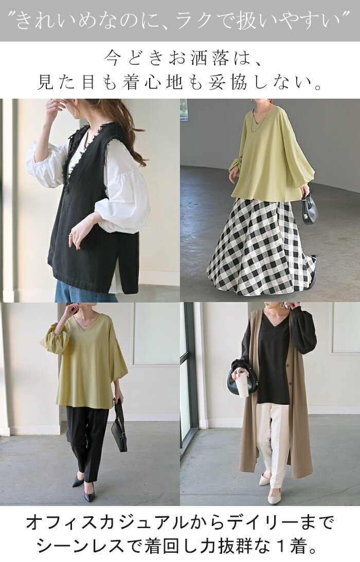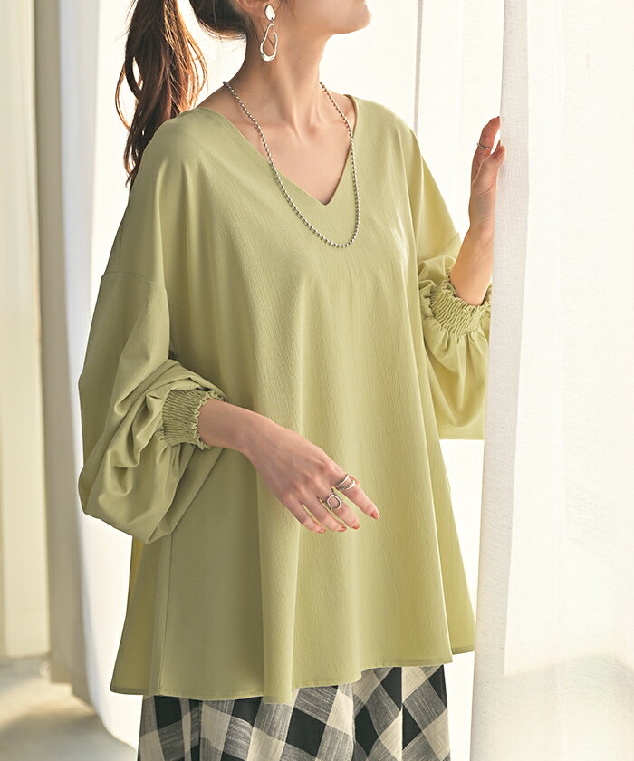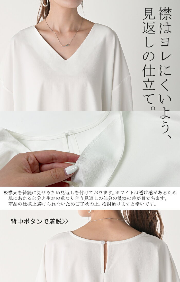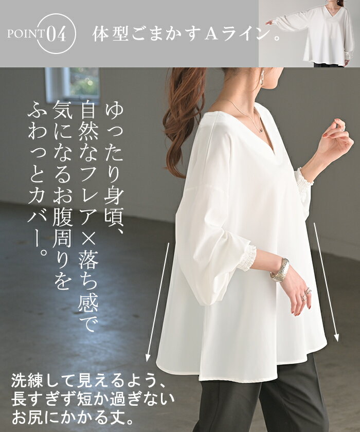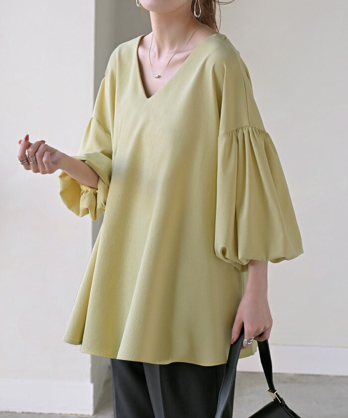 【SALE】 シャツ 『 選べる 袖丈 』 【即納】 楊柳 レディース トップス ブラウス ロング ロングシャツ チュニック Vネック シワになりにくい 長袖 半袖 無地 ボリュームスリーブ ゆったり 大きいサイズ 体型カバー お尻が隠れる きれいめ 黒 白 春 夏 HUG.U