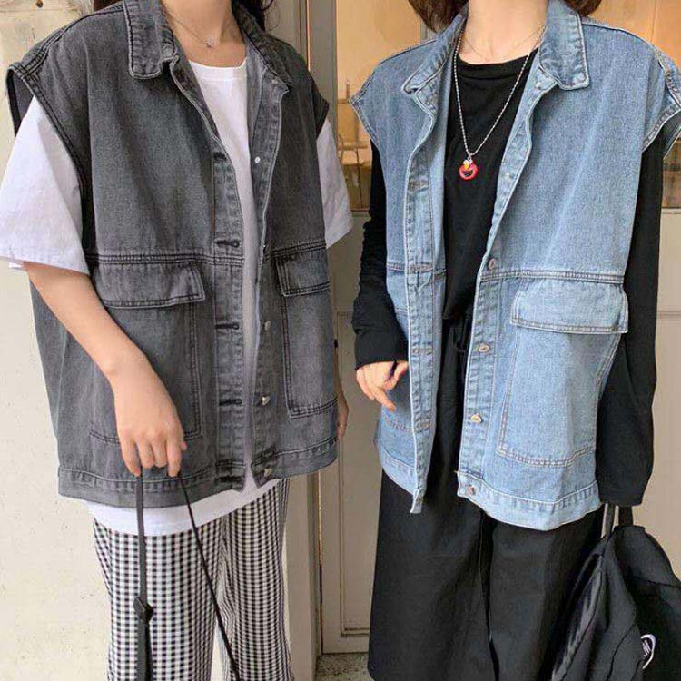 デニムベスト S-4L ベスト カジュアルジャケット デニムジャケット アメカジ ノースリーブ トップス 前開き レディース ブルー ブラック カジュアル ゆったり オーバーサイズ 重ね着 レイヤード おしゃれ かわいい