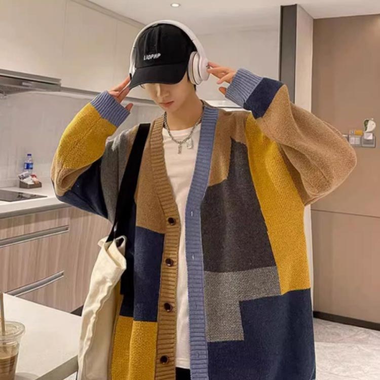 ニットカーディガン メンズ S-8XL!カーディガン 秋冬 羽織り 前開き ニットトップス カラーブロック 長袖 体型カバー セーター 大きいサイズ カジュアル おしゃれ ゆったり 体型カバー 重ね着