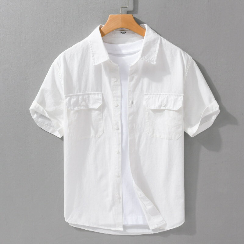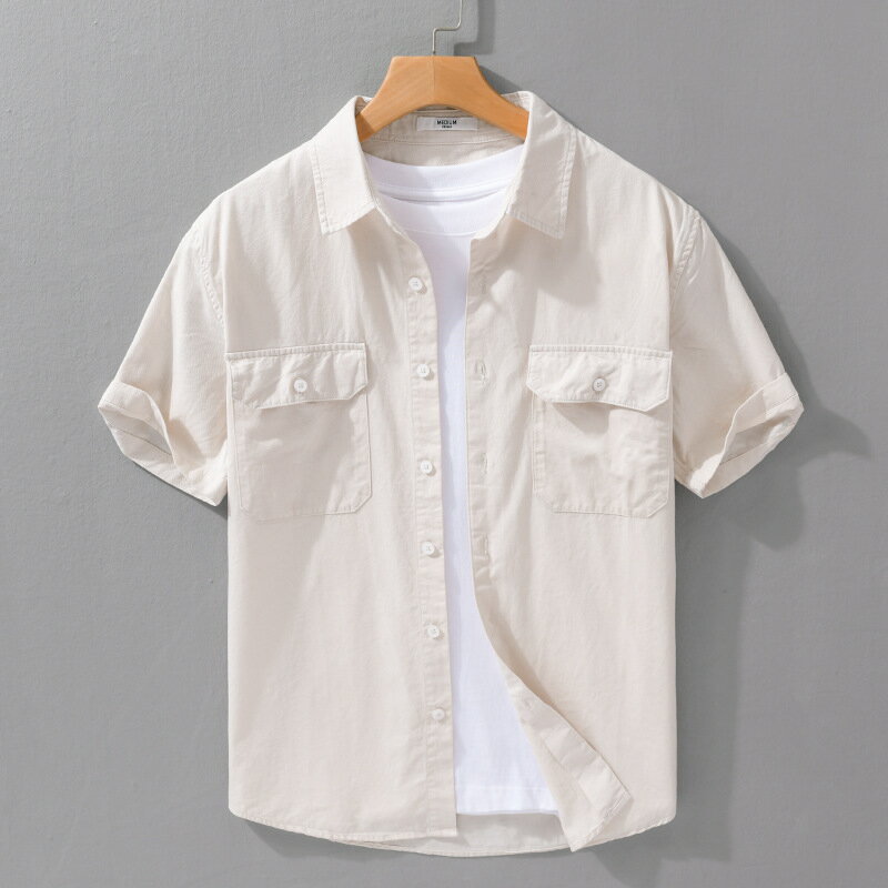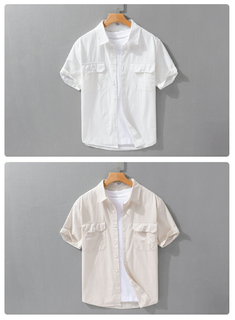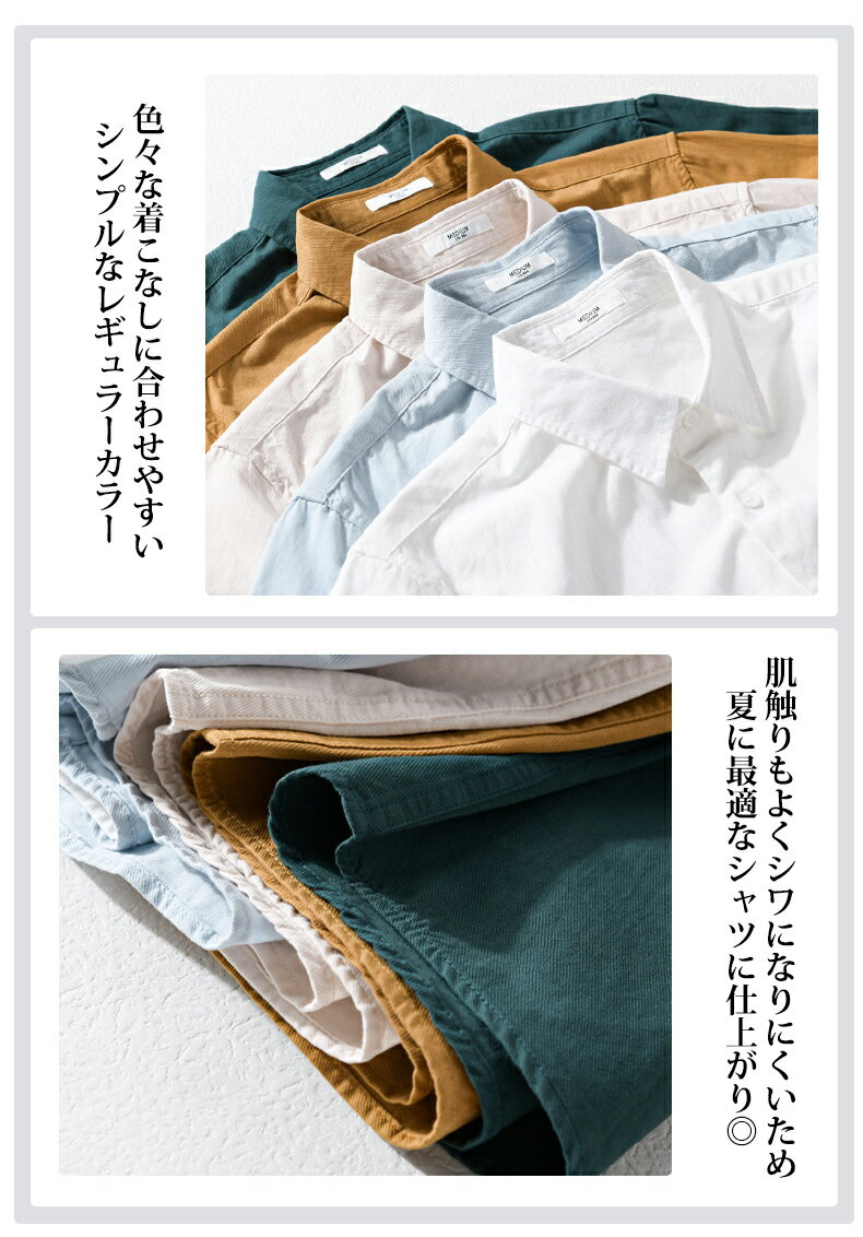 シャツ メンズ 半袖シャツ 無地 両ポケット付き ワークシャツ シンプル 羽織り 作業着 綿100% おしゃれ タイト 細身 かっこいい 柔らかい トップス カジュアルシャツ 白シャツ 夏 夏服 メンズファッション