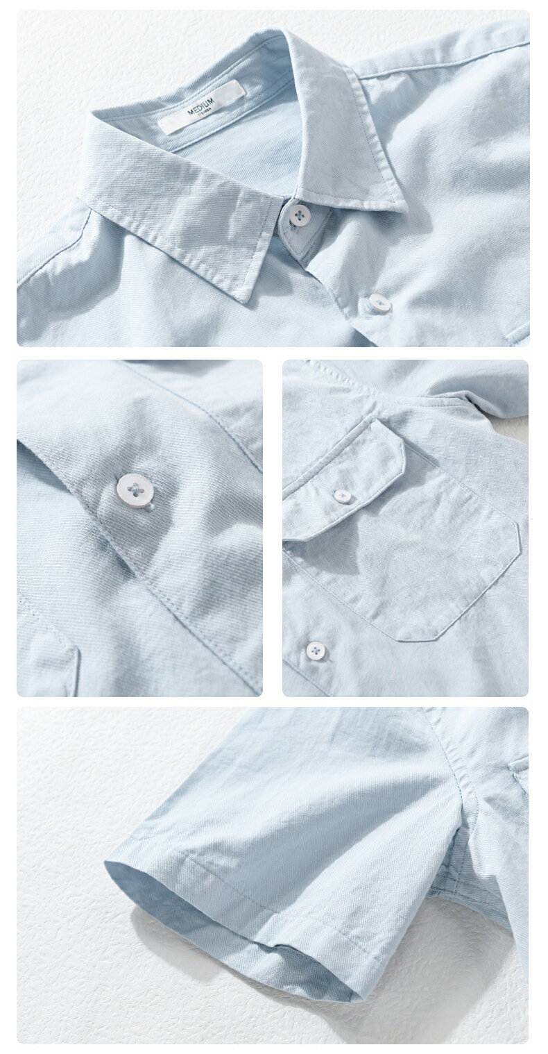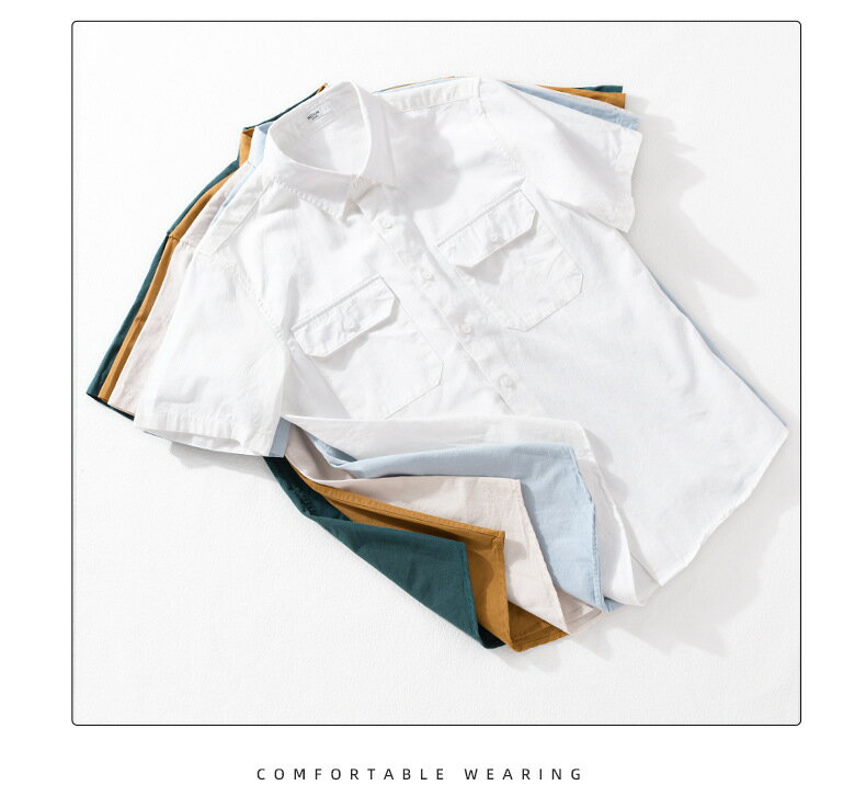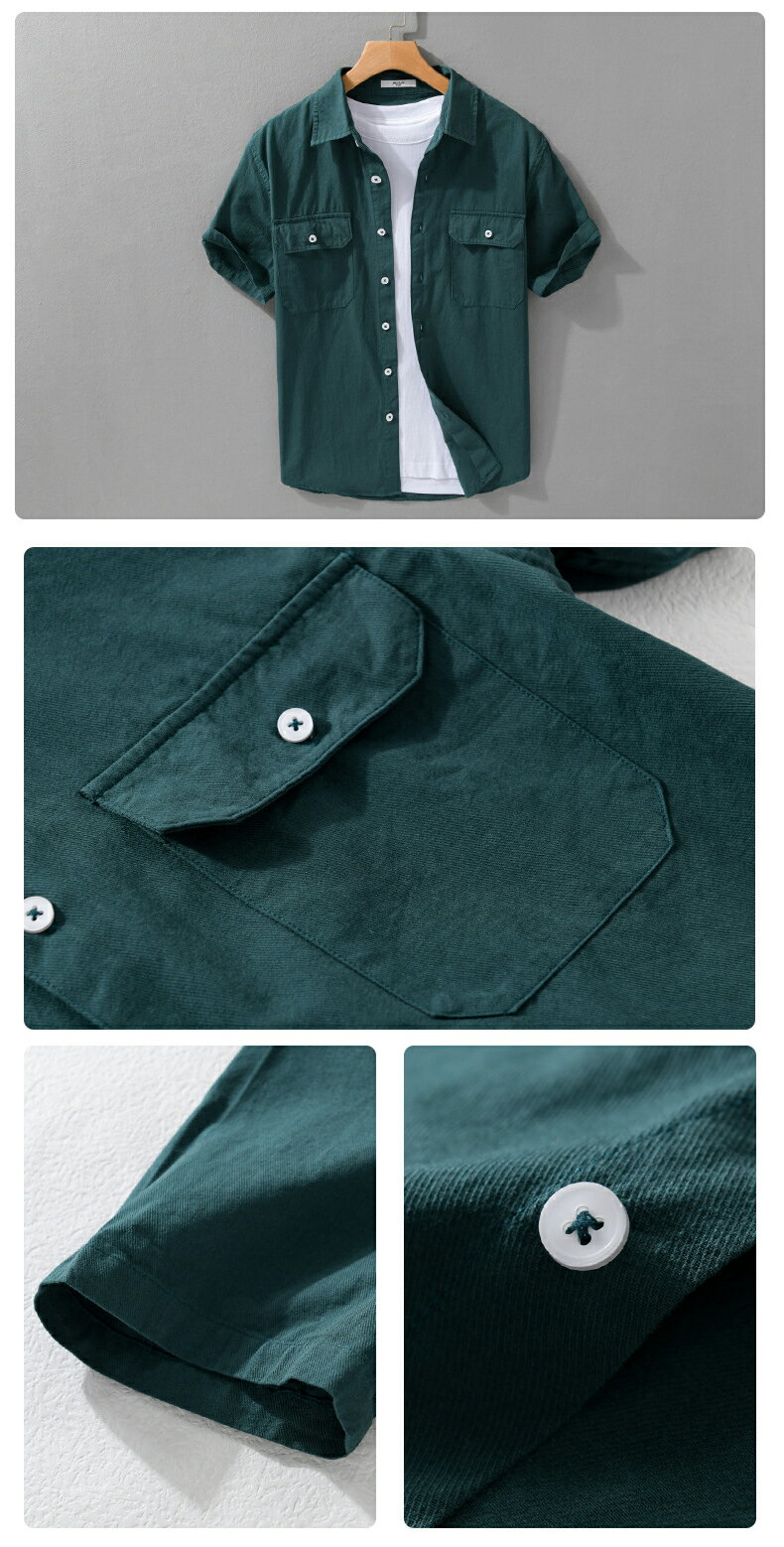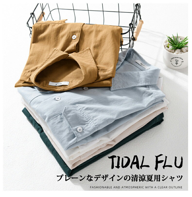 シャツ メンズ 半袖シャツ 無地 両ポケット付き ワークシャツ シンプル 羽織り 作業着 綿100% おしゃれ タイト 細身 かっこいい 柔らかい トップス カジュアルシャツ 白シャツ 夏 夏服 メンズファッション