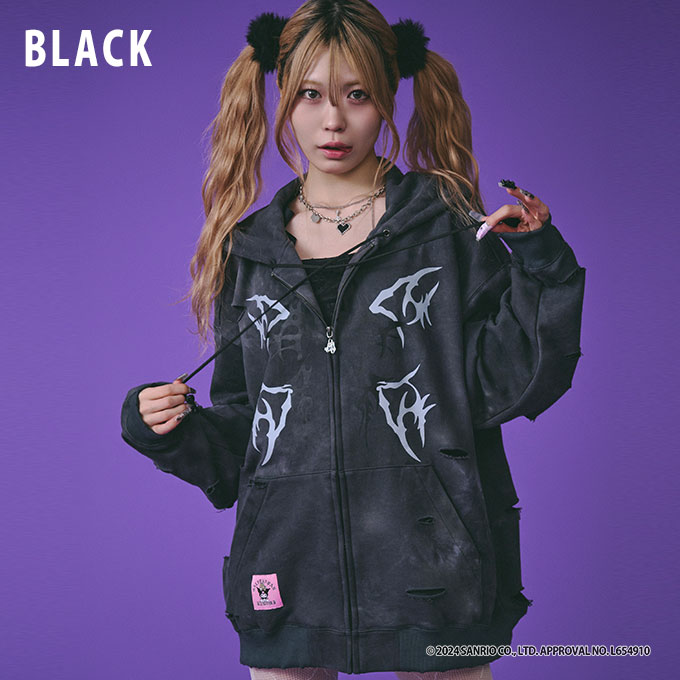 ガルフィー×クロミ 限定 レディース パーカー クロミちゃんイルガフィームラ染めZIPパーカー おしゃれ GALFY od ‥