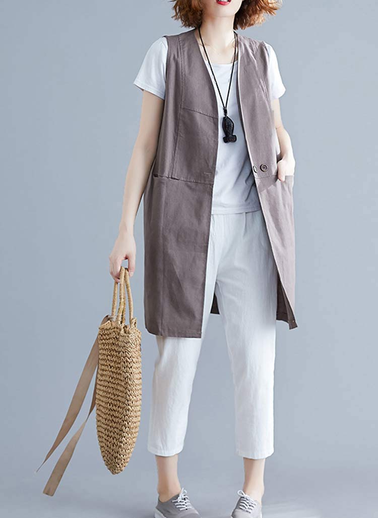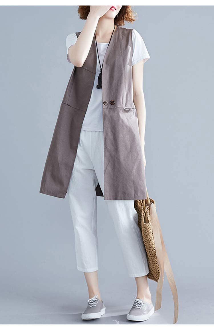 ロングジレ レディース 春夏 ベスト ロング丈 リネン ノースリーブ 前開け ボタン止め ジレベスト Vネック ジレ 大きいサイズ 綿麻風 トレンチベスト ジレンチ トップス ロングベスト ゆったり カジュアル チョッキ レイヤード
