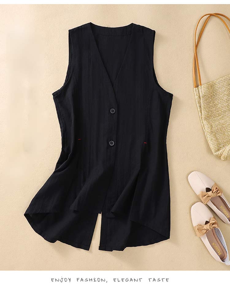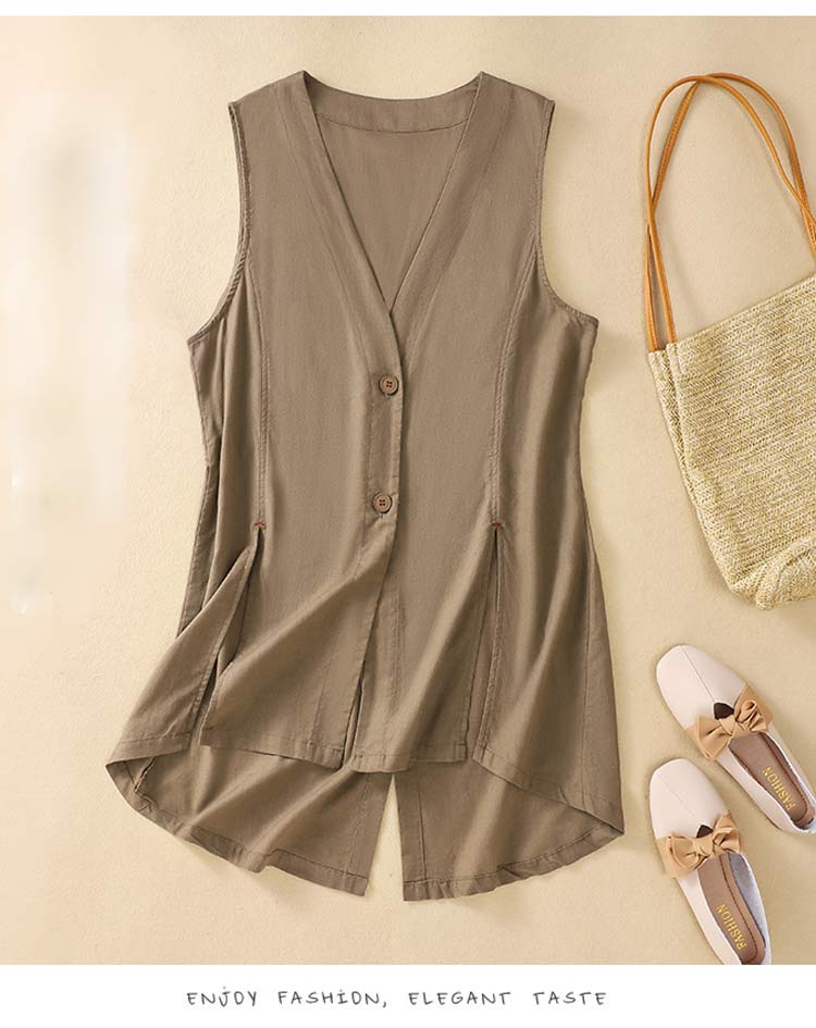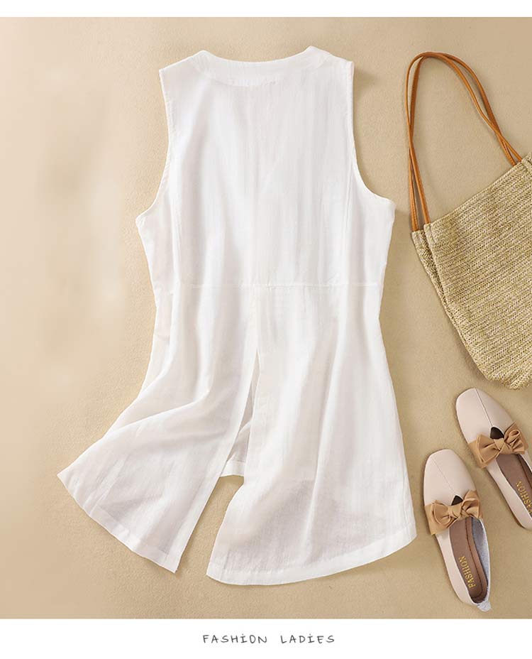 ジレ レディース 夏 薄手 ノースリーブ ベスト リネン ロングジレ ビッグVネック スリット ロング ジレベスト カジュアル トップス 大きいサイズ ゆるめ チョッキ 羽織り サマージャケット ロングベスト 通勤 OL フォーマル