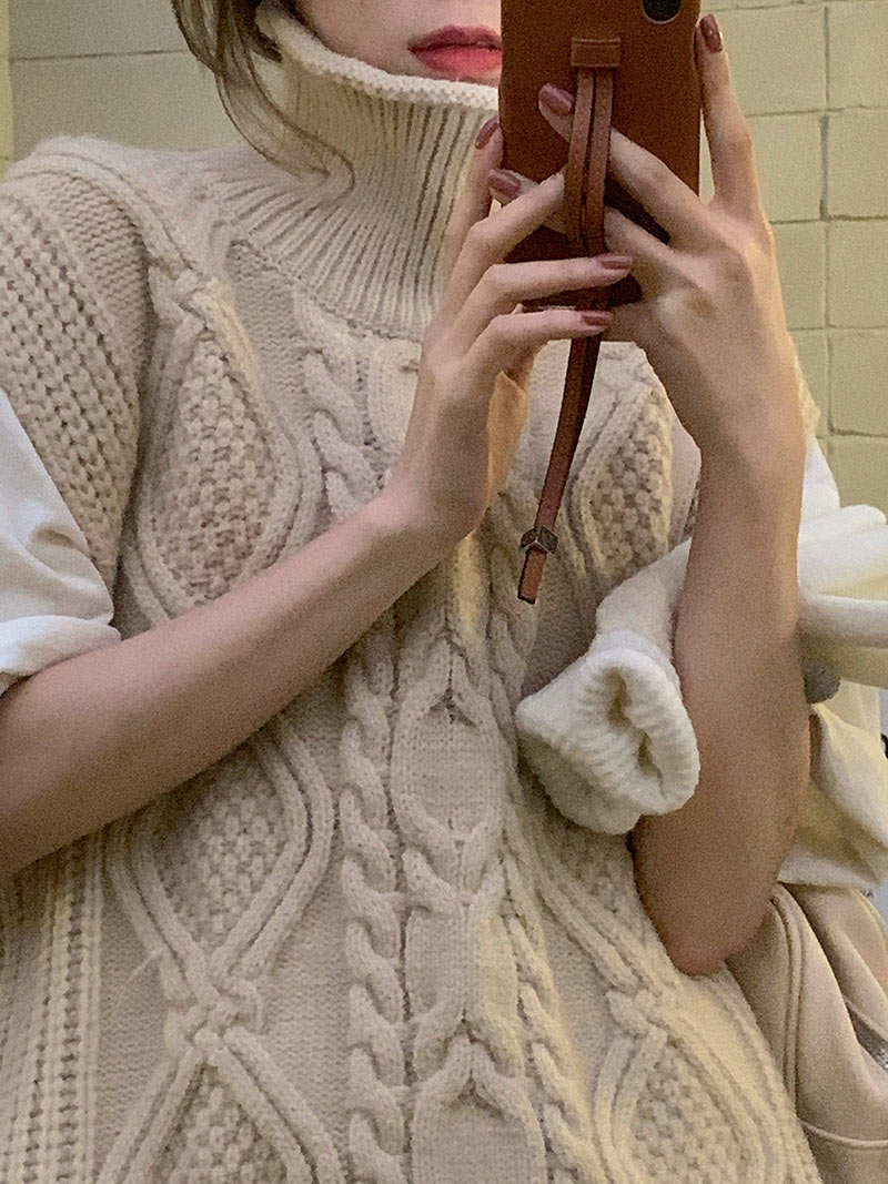 ハイネック ニット ベスト レディース 秋冬 ニットベスト タートルネック トップス ノースリーブ 大きいサイズ リブ ニットトップス セーター 重ね着 ニットセーター お洒落 アウター 無地 ショート丈 レイヤード プルオーバー ニットソー 春秋