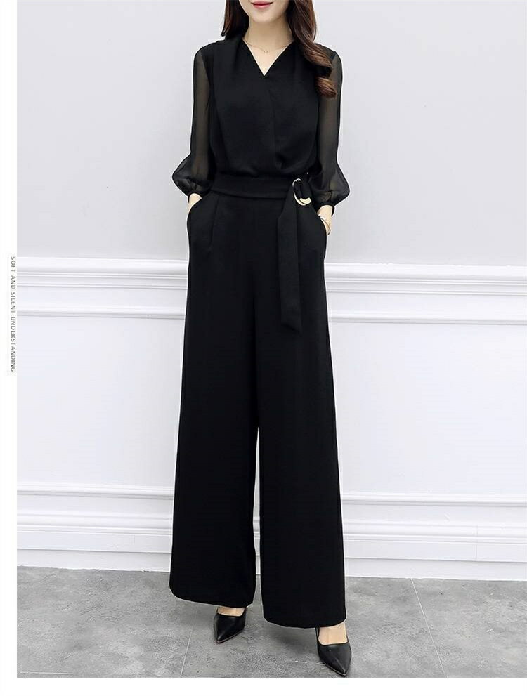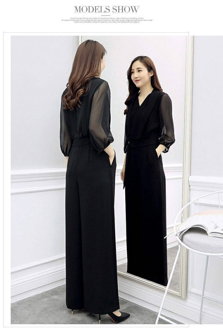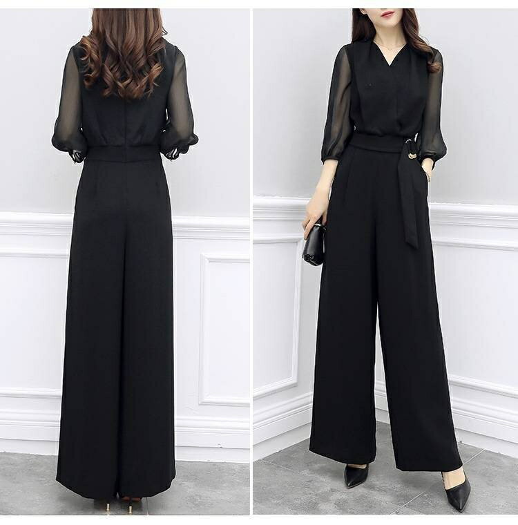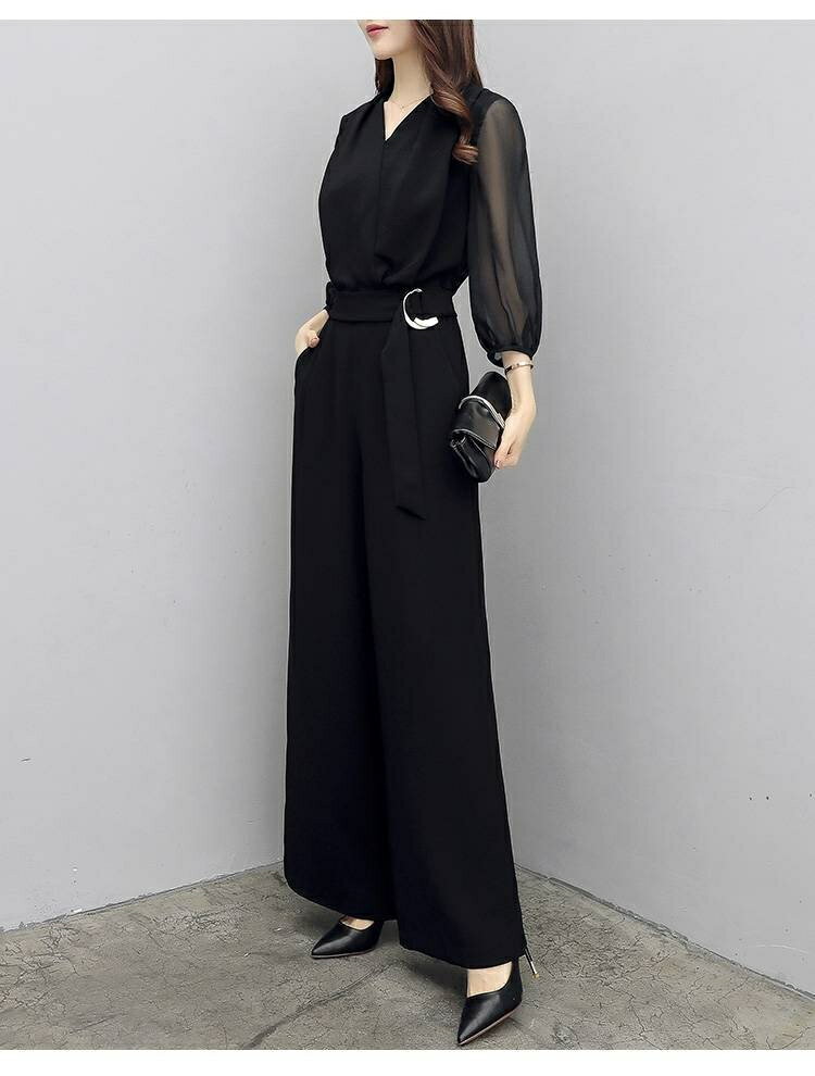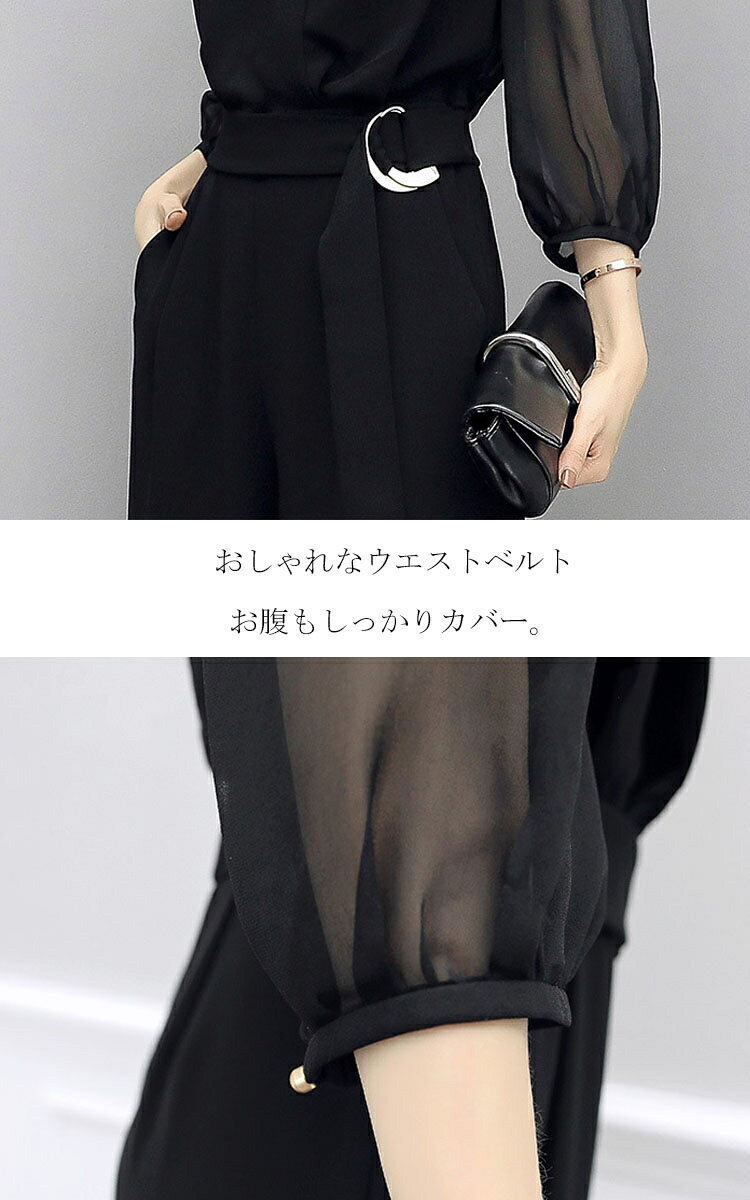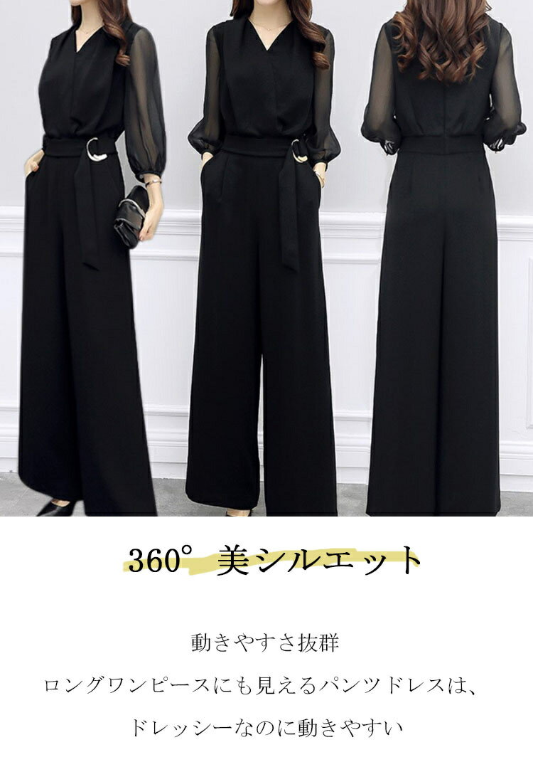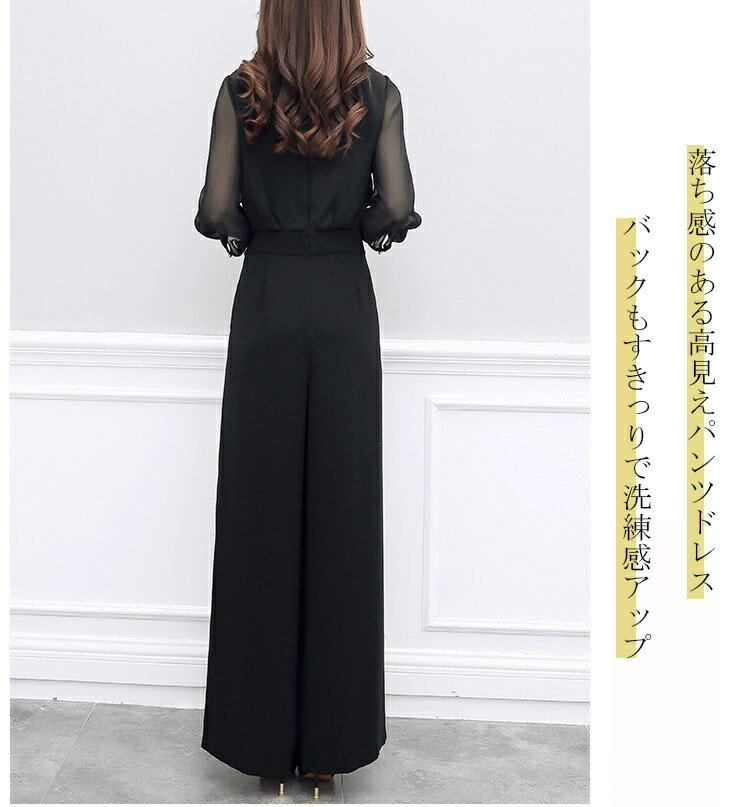 パンツドレス 結婚式 大きいサイズ セットアップ 演奏会 パーティー ドレス オールインワン パンツ ドレス レディース ロング 透け感 シアー 七分袖 トップス Vネック フォーマルドレス 大人 可愛い 体型カバー 成人式 同窓会 春 夏 秋 40代 30代