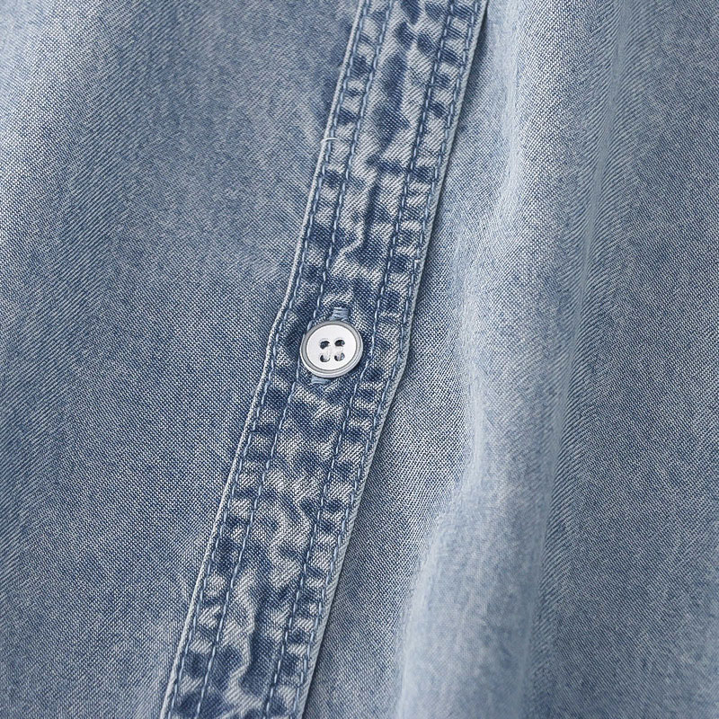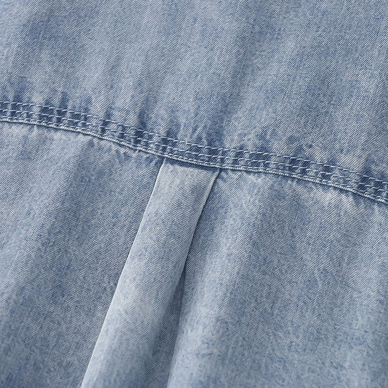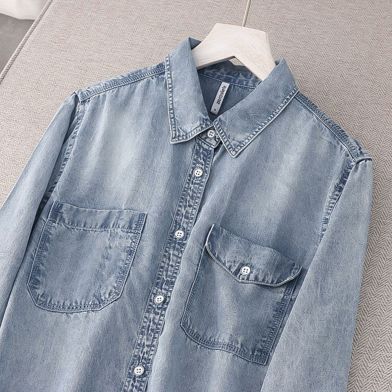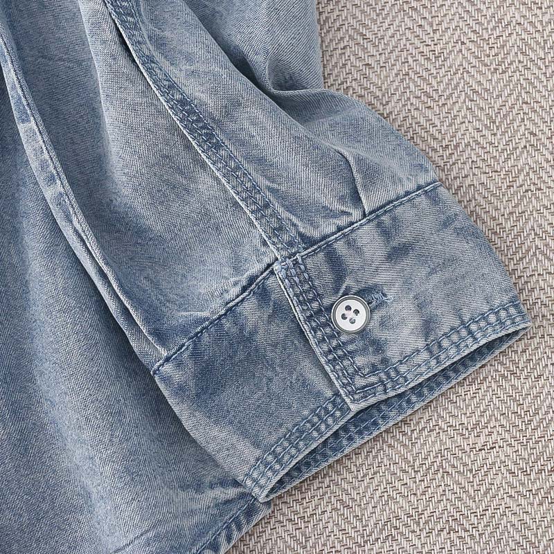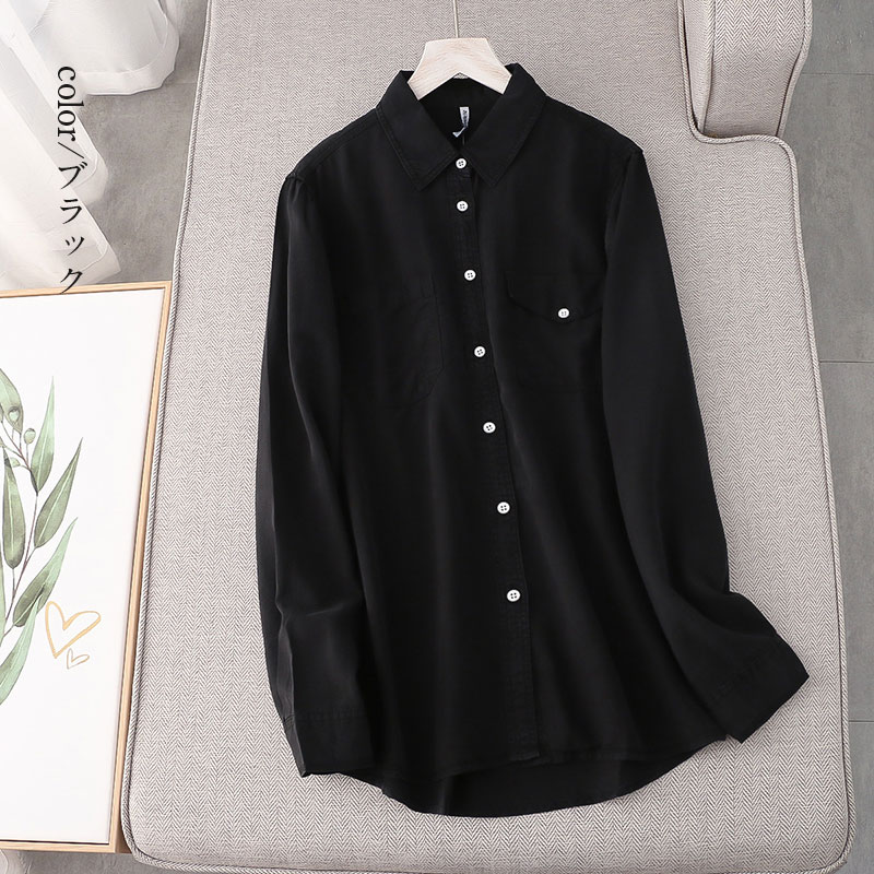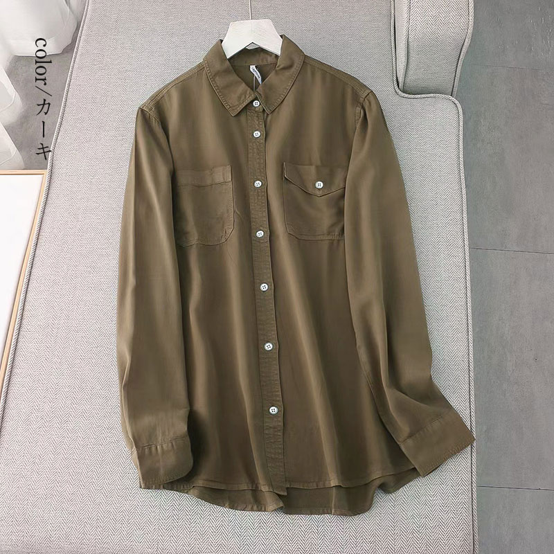 チュニック ロングシャツ レディース チュニックシャツ テンセル デニム 長袖 体型カバー 大きいサイズ 襟付き レギュラカラー 羽織り トップス シャツ ライトアウター レイヤード 重ね着 前後差 前開き ゆったり 春 秋 冬 ポケット 30代 40代 50代
