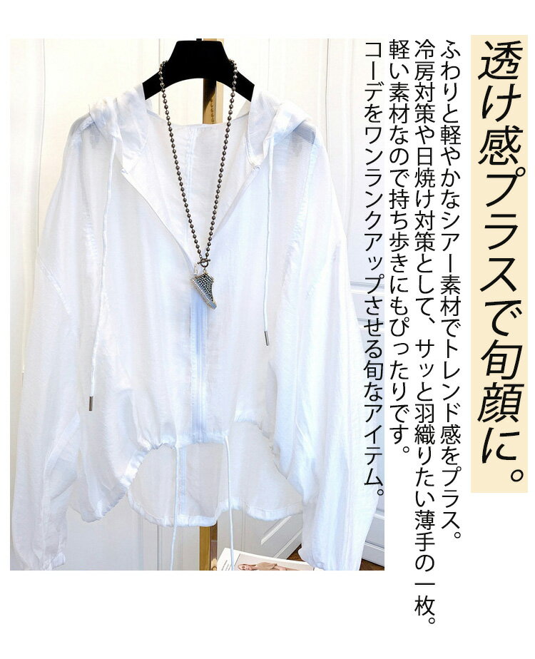 \赤字覚悟&サイズ質感改良!マラソン1899円~/即納 マウンテンパーカー レディース パーカー 薄手 シアーブルゾン フード付き ジャケット 羽織り カジュアル トップス シアー ブルゾン きれいめ 長袖 ボリューム袖 体型カバー 日焼け対策 UV対策 日よけ ゆったり 春 夏