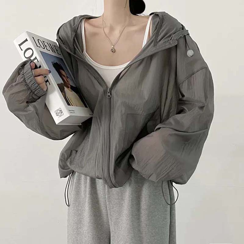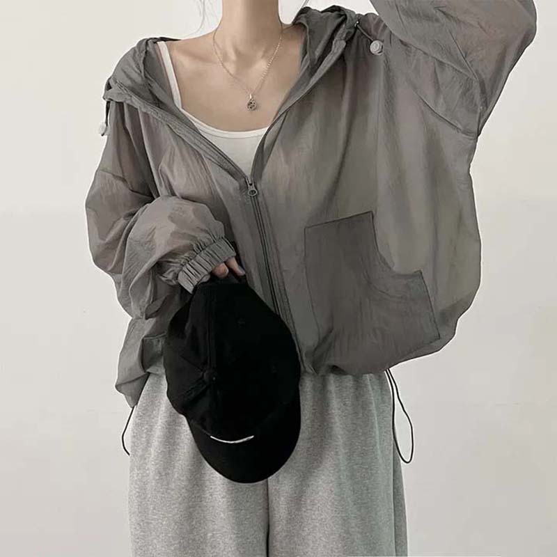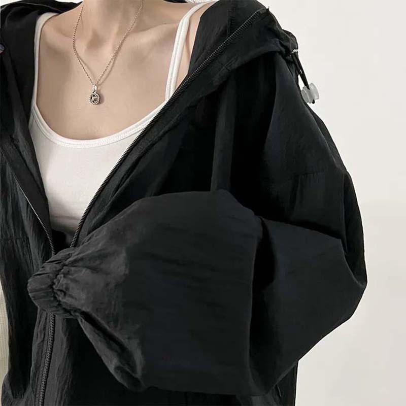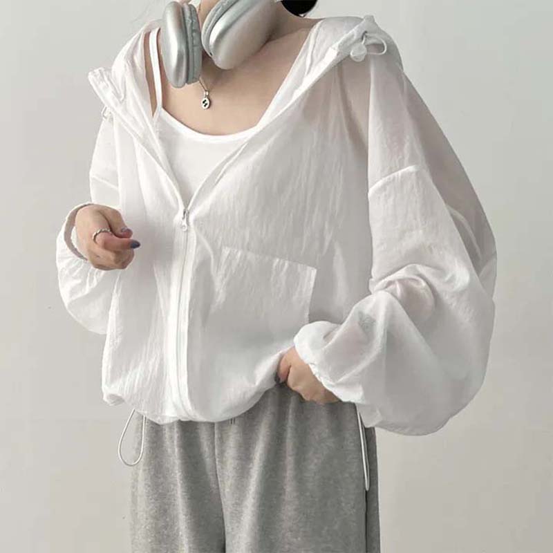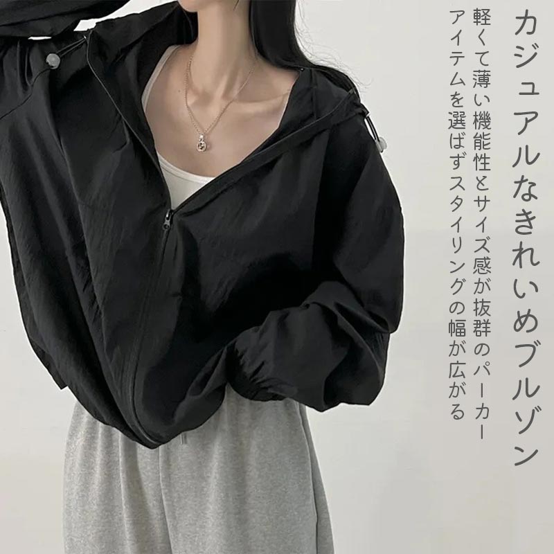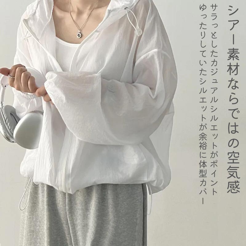 シアー パーカー レディース uvカット ブルゾン アウター 薄手 透け感 ゆったり シアーブルゾン 大きいサイズ ライトアウター 透ける フード付きパーカー バルーンスリーブ サマージャケット 冷房対策 紫外線対策 サマー 白 黒 春夏