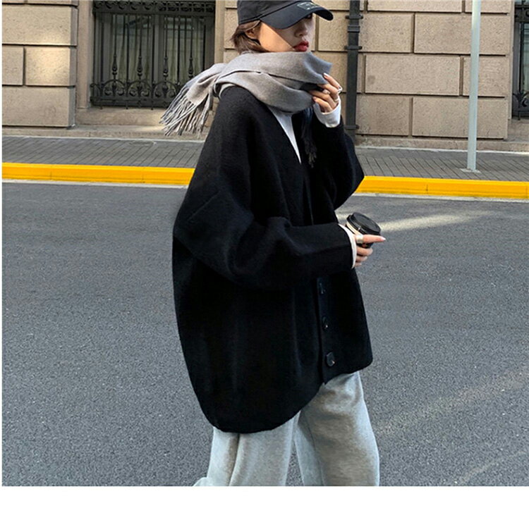 ニットカーディガン レディース 秋冬 ニット カーディガン ゆったり ニット羽織り トップス 長袖 長そで ニットコート 厚手 ドロップショルダー ボタン留め Vネック 大人 シンプル カジュアル 大きいサイズ 体型カバー ブラック 黒 2024秋冬