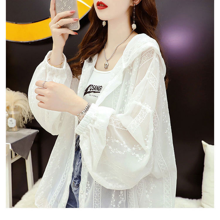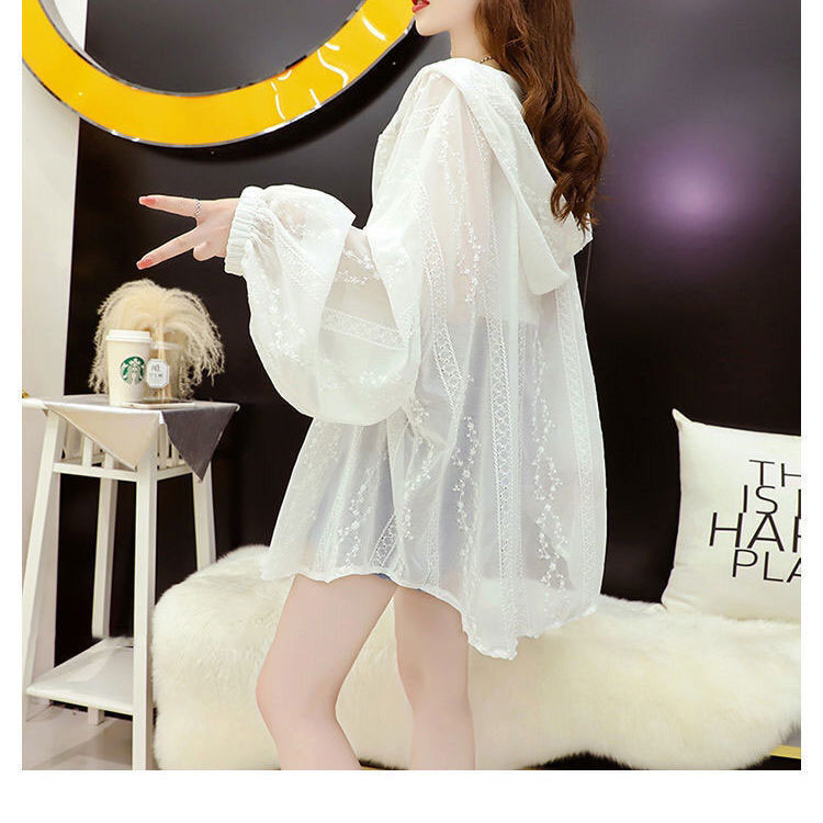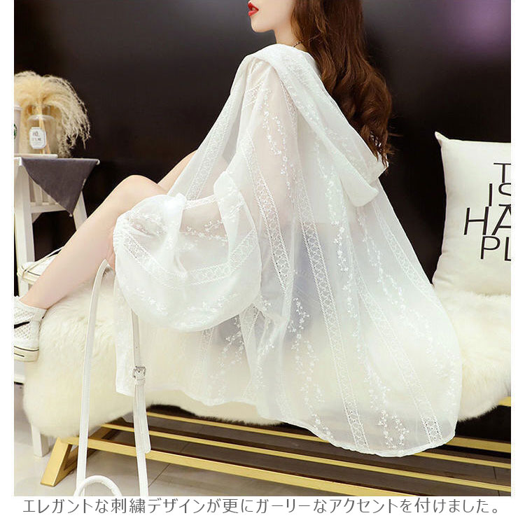 サマー パーカー レース レディース 夏 レースパーカー 薄手 接触冷感 パーカー トップス カーディガン 刺繍 ドルマン サマーカーディガン バルーンスリーブ オーバーサイズ 春 透け感 レースカーディガン ホワイト ブラック ライトアウター リゾート 日焼け対策