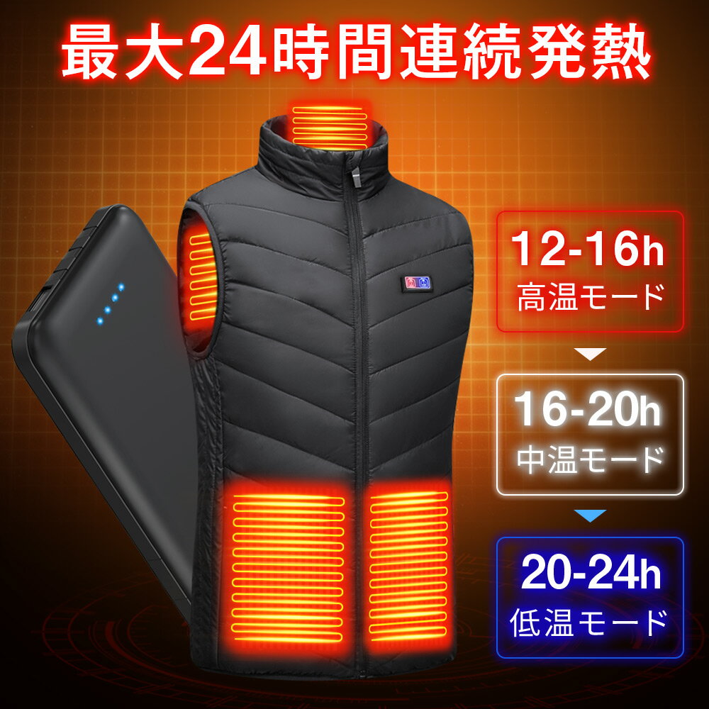 「楽天1位」電熱ベスト 電熱ウェア ヒーターベスト バッテリー付 20000mAh 日本製繊維ヒーター 電熱ジャケット 3段温度調整 5秒速暖 バッテリー給電 防寒ベスト 加熱ベスト 加熱パネル9枚 洗える 超軽量 男女兼用 レディース メンズ 2024