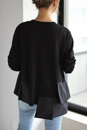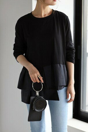 アシンメトリーデザイン お尻が隠れる★ レディース トップス フレア ギャザー アシンメトリー シャツ トップス カットソー レディースシャツ カジュアル aライン長袖 シンプル 切り換え 無地 ブラック 体型カバー すっぽり ゆったり honeybeeshop ペプラム フリルトップス