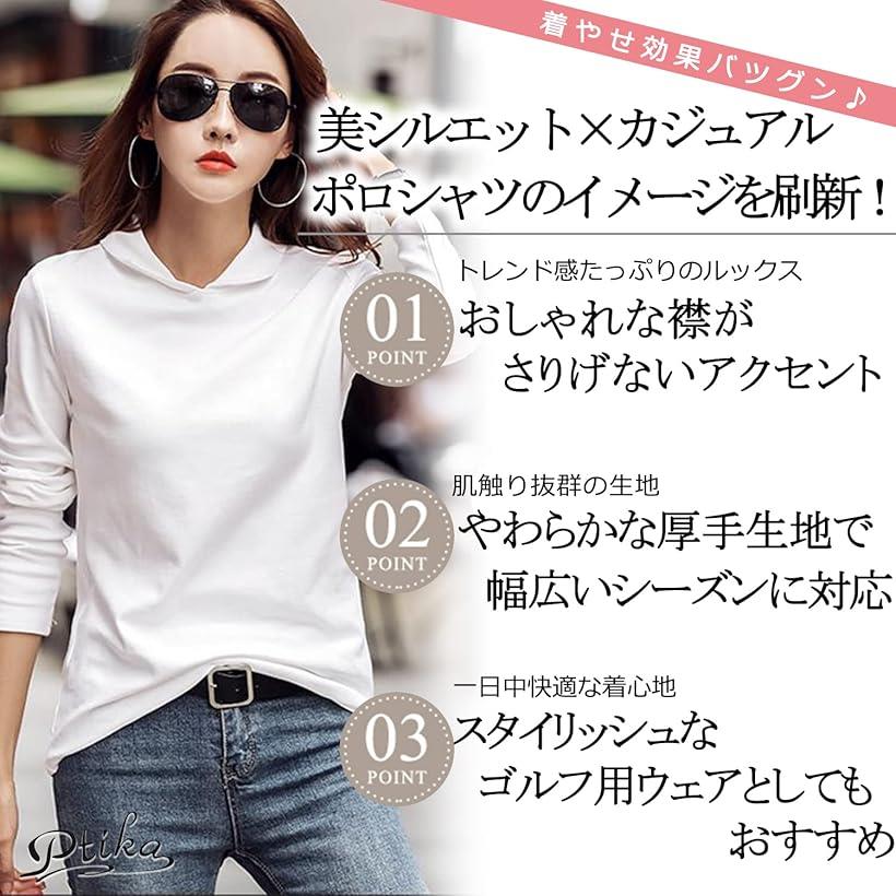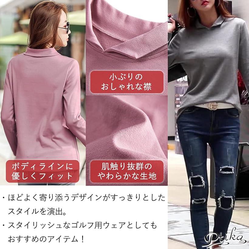 ポロシャツ レディース 長袖 襟付き ゴルフ ウェア カットソー トップス 無地(グレー, L)