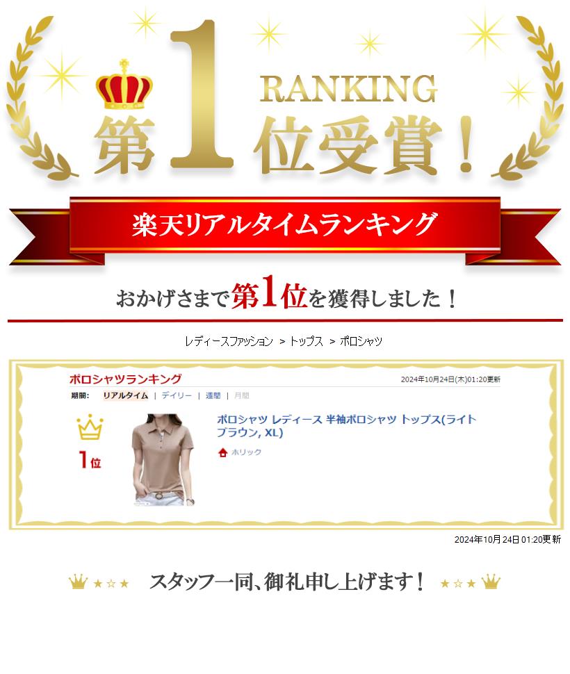 【楽天ランキング1位入賞】ポロシャツ レディース 半袖ポロシャツ トップス(ライトブラウン, XL)