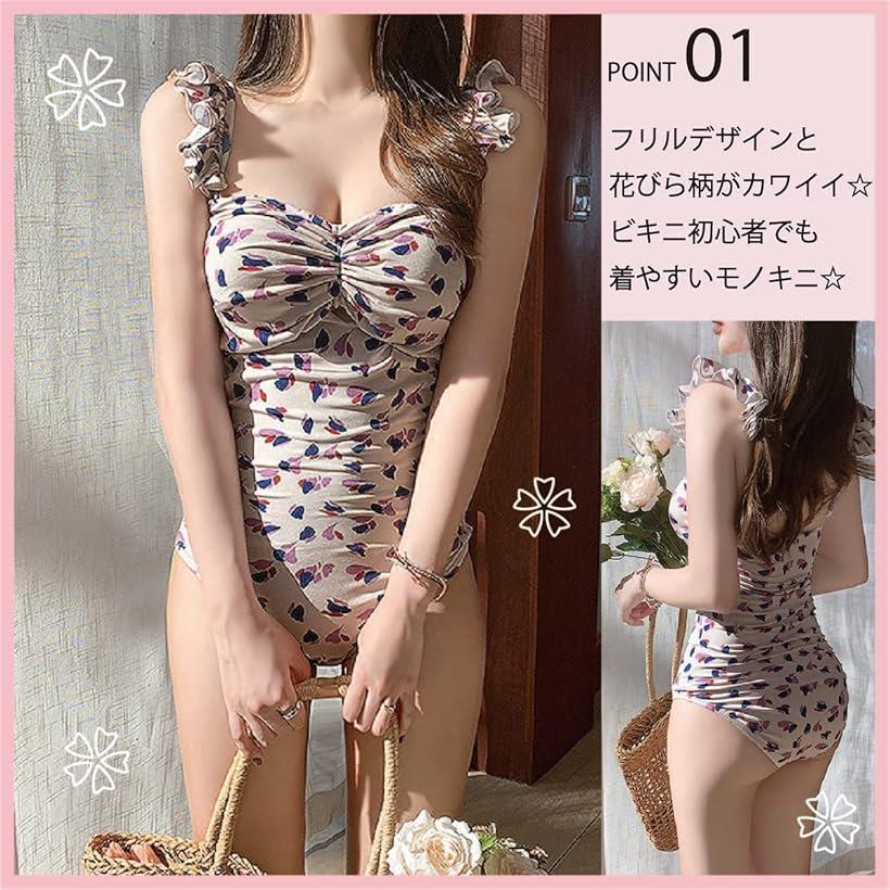 水着 ワンピース ビキニ 花柄 フラワー フリル ギャザー パッド入り スイムスーツ 可愛い スイムウェア レディース(ネイビー, XL)