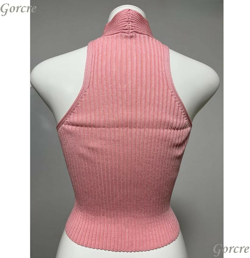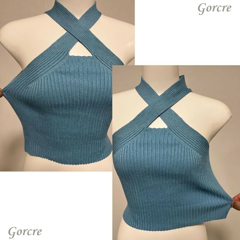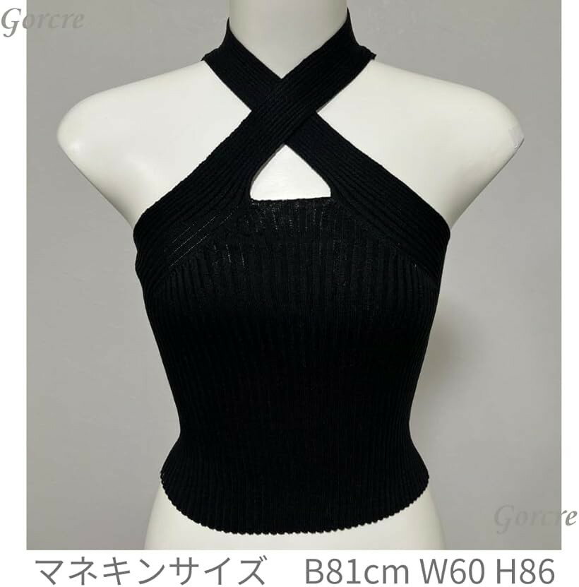 クロス ホルターネック キャミソール レディース ドライ セクシー リブ ニット ショート クロップド 丈 トップス 柔らか ストレッチ(ホワイト, Free Size)