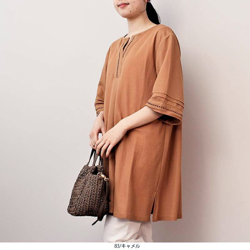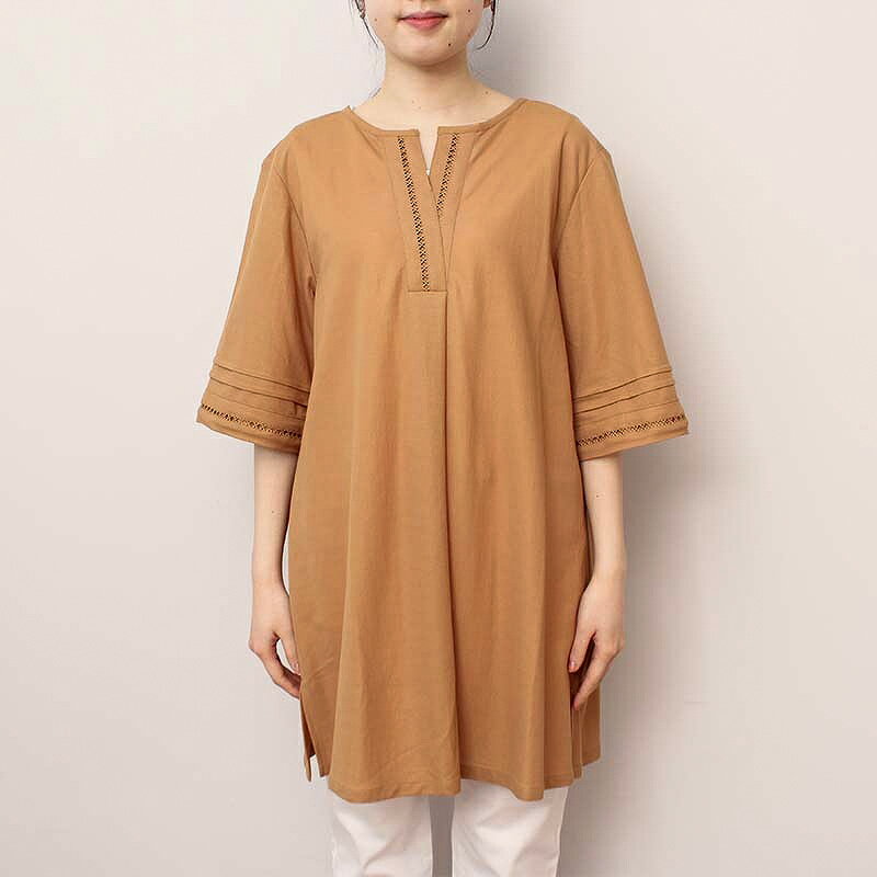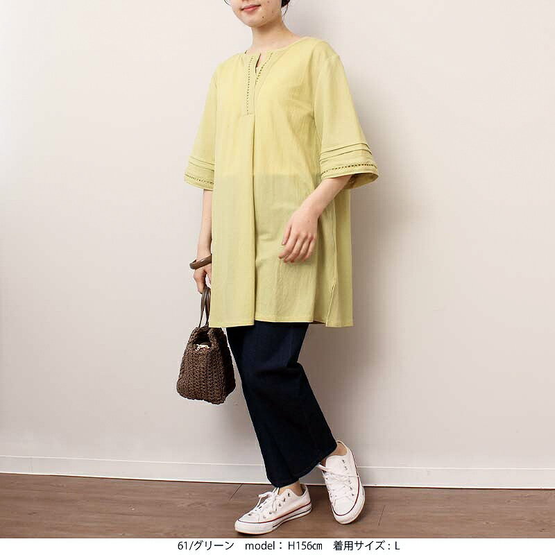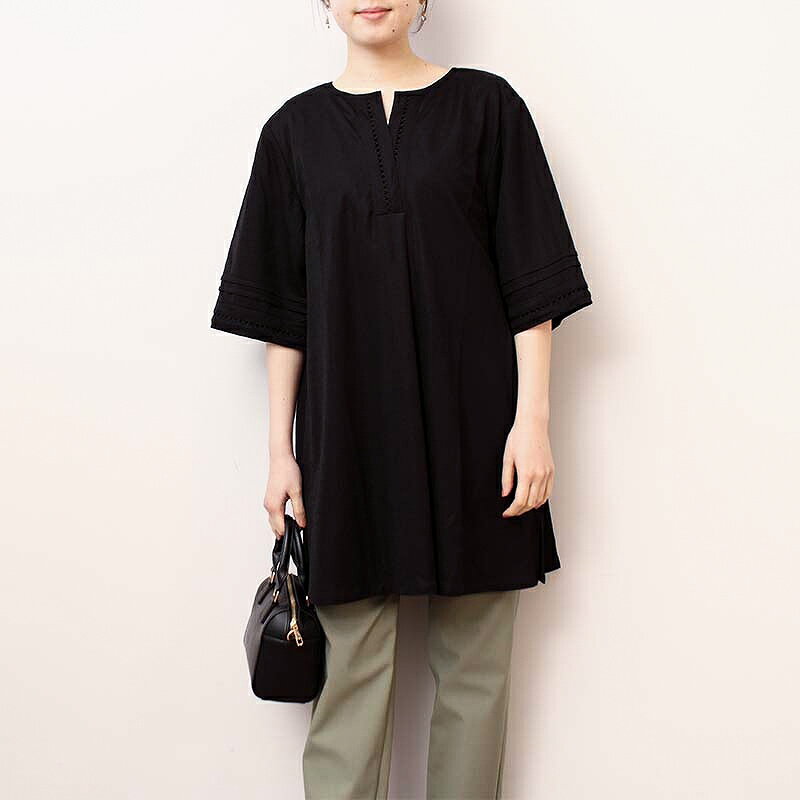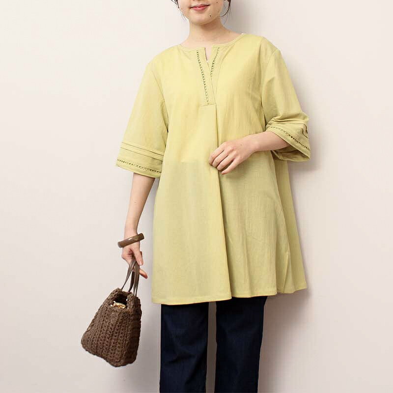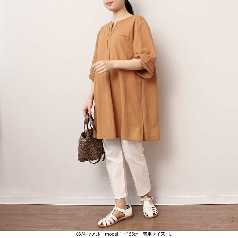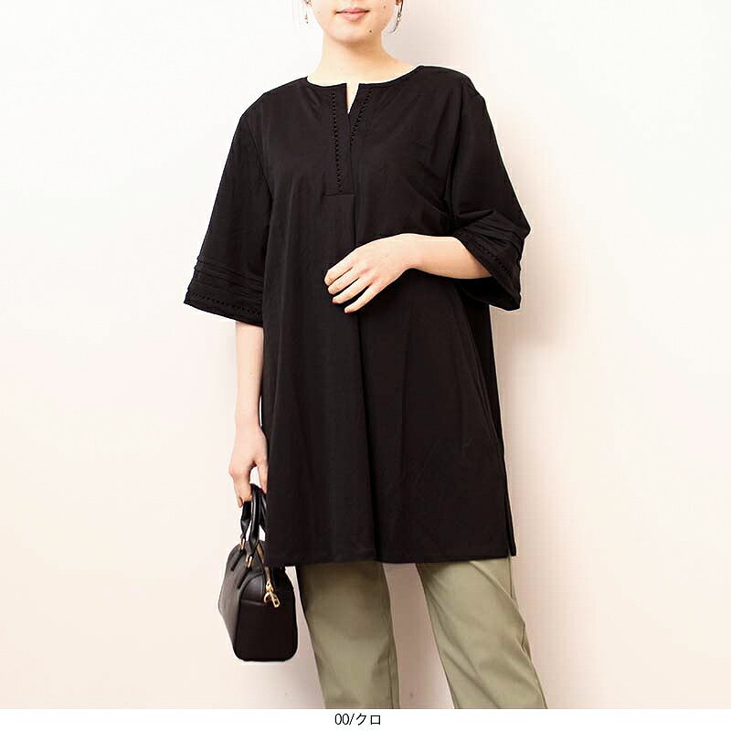 タイムセール【新作L~6L】ハシゴレース チュニック ワンピース カットソー 大きいサイズ レディース 春 夏 半袖 【MB エムビーミントブリーズ】 婦人服 ファッション 30代 40代 50代 60代 ミセス おしゃれ 通販 送料無料