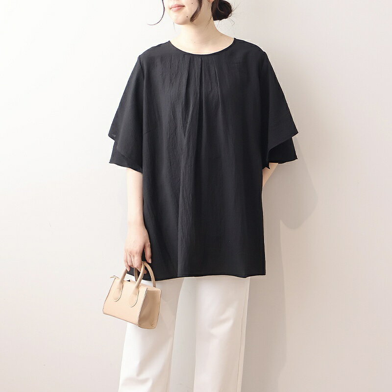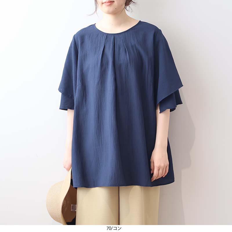 タイムセール【新作LL〜6L】チューリップ袖 タックブラウス 大きいサイズ レディース 春夏 きれいめ 半袖 可愛い【MB エムビーミントブリーズ】 婦人服 ファッション 30代 40代 50代 60代 ミセス おしゃれ 通販 送料無料