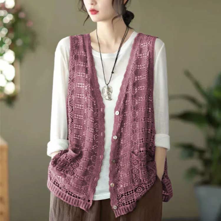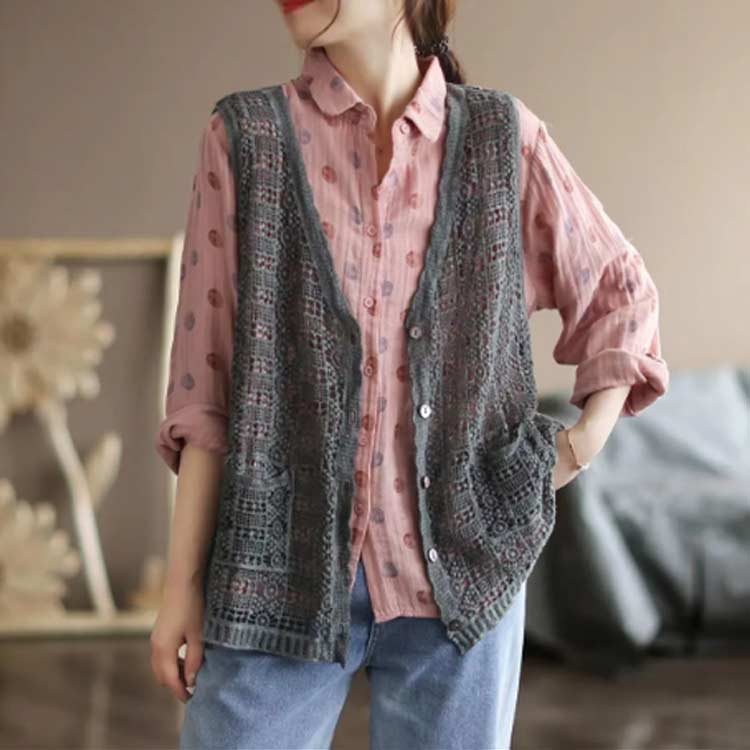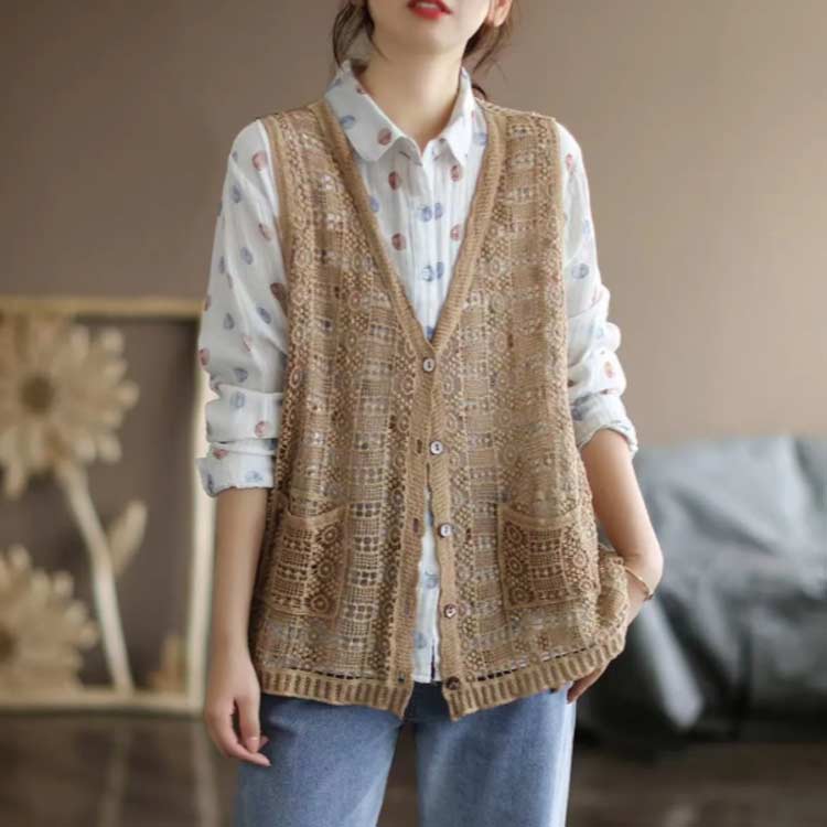 レディース ニットベスト ジレ アウター 送料無料 ショート丈 重ね着 トップス 前開き ベスト 前開き カーディガン 春夏 花柄 春ベスト 透かし編み 総柄 レース 大人 ノースリーブ 洒落 ニット編み レイヤード風 通勤 おしゃれ