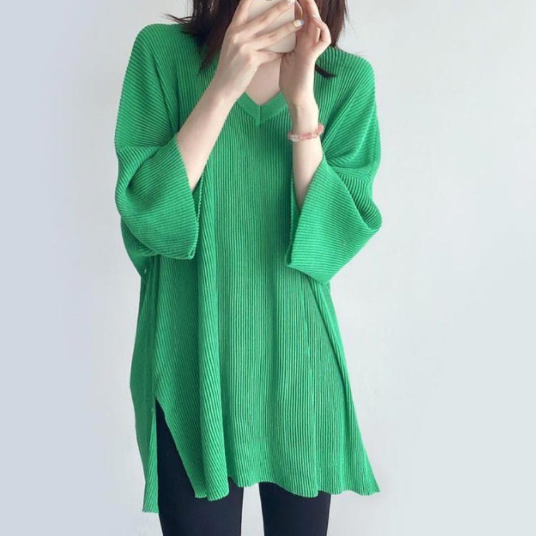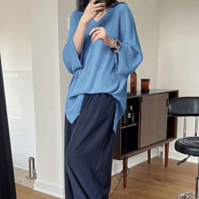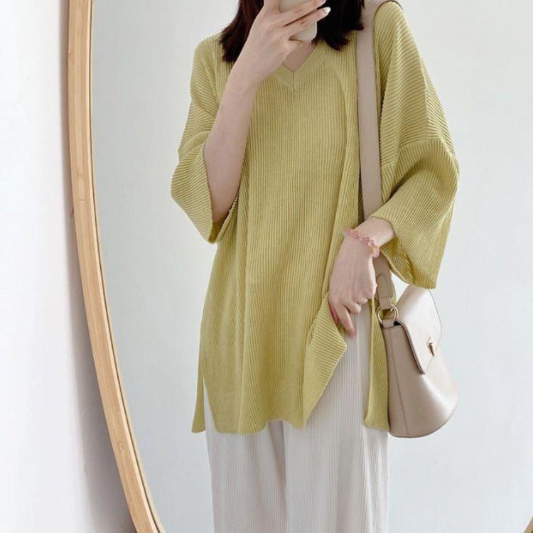 ロンT Tシャツ リブニット M VネックTシャツ 薄手 ニットトップス 冷感 ゆったり 七分袖 Tシャツ チュニック サマーニット カジュアル かわいい 体型カバー 大きいサイズ S おしゃれ L XL レディース