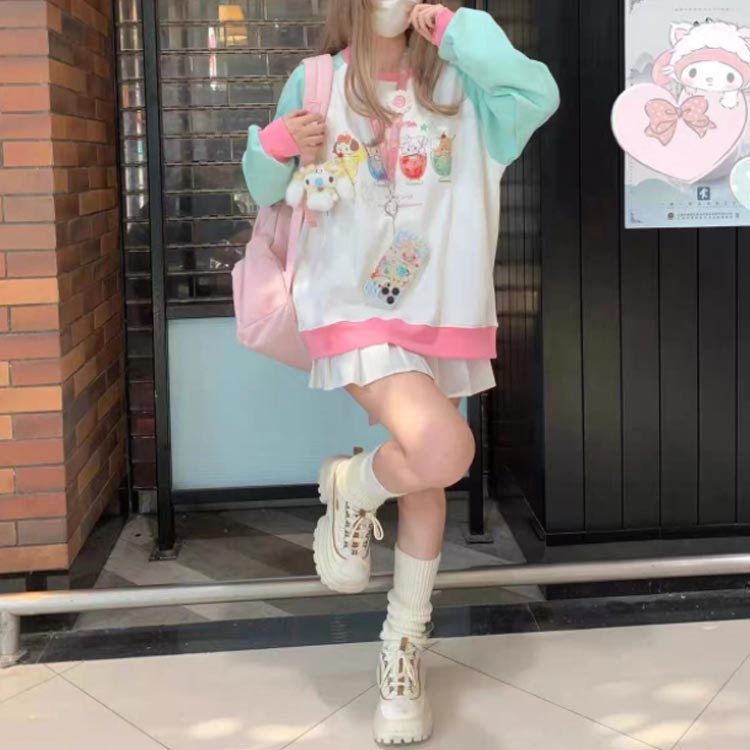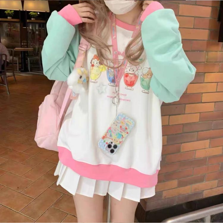 トップス Y2K 冬 春 秋 プルオーバー プリント レディース 長袖 量産型 かわいい 原宿系 服 スウェット トレーナー 地雷系 長袖tシャツ ゆったり おしゃれ 春服 韓国 クルーネック 可愛い パーカー カジュアル
