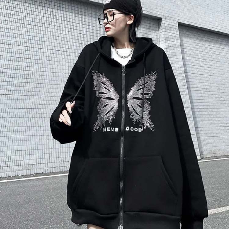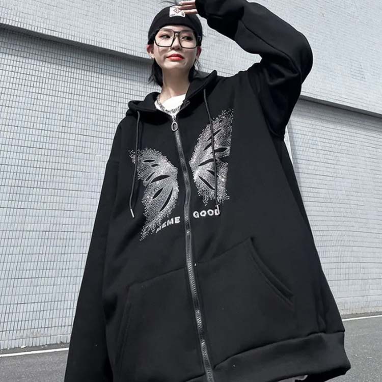 ジップアップ 地雷系 ゆったり おしゃれ 病みかわいい 長袖 アウター パーカーレディース 男女兼用 サブカル系 トレーナー オーバーサイズ ジップアップ フード付き 日常着 お出掛け 原宿系 渋谷系 ストリート系 ギャル服 秋
