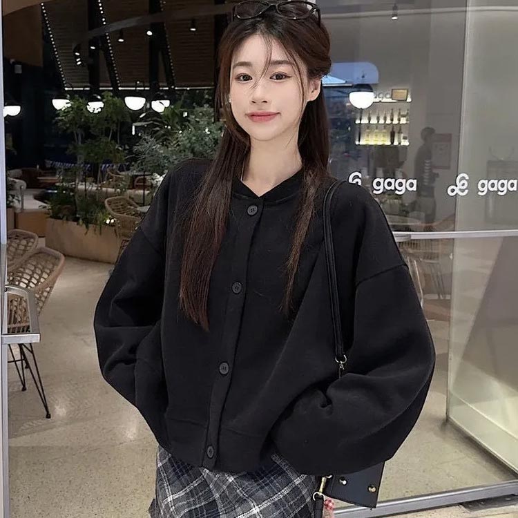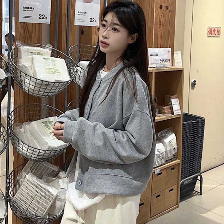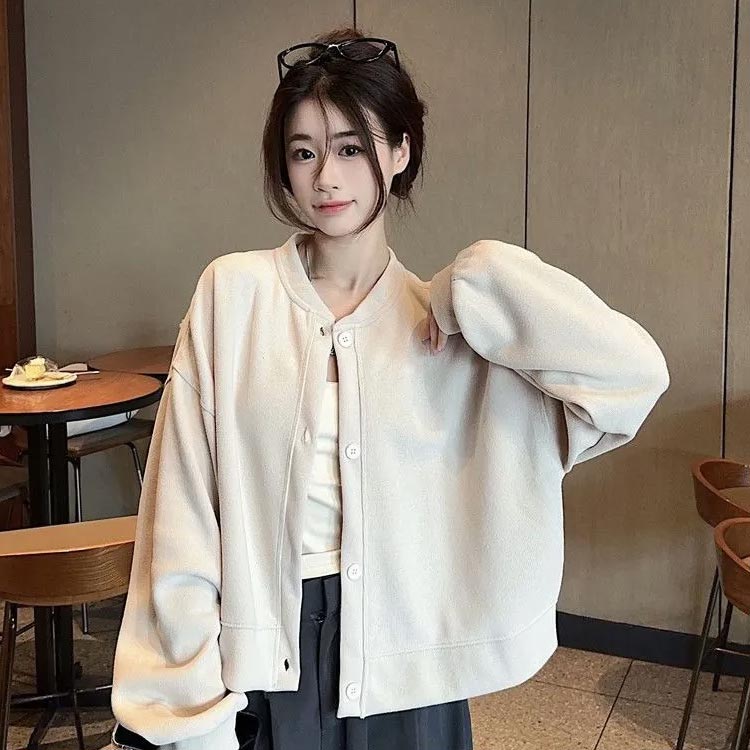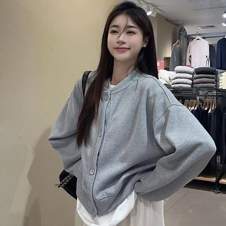 カーディガン ボタン カーディガン ゆったり 体型カバー スウェット レディース トップス 女子 クルーネック ジャケット パーカー 羽織り アウター 長袖 トレーナー 通学 通勤