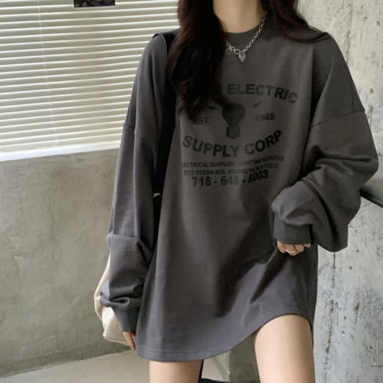 ロゴスウェット 長袖 レディース Tシャツ トップス スエット トレーナー 大きいサイズ ゆったり ロゴ プリント 英字 プルオーバー ロゴスウェット ボリューム袖 スウェット お尻が隠れる 体型カバー 大きめ 春夏秋 カジュアル