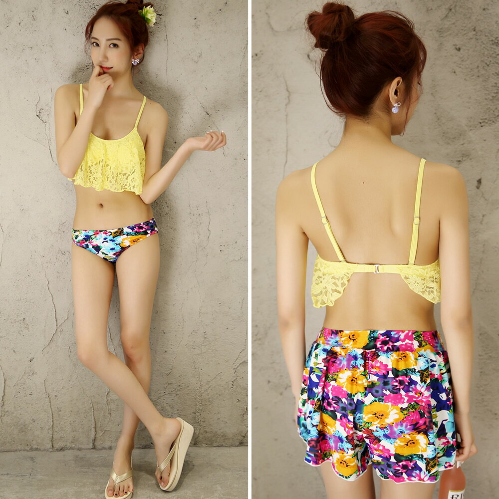 水着 トレンド 水着 レディース 花柄 フリル水着 ビキニ 3点セット フレアビキニ/S/M/L 通販 楽天 セパレート mizugi ショートパンツ 短パン セクシー キャミソール ママ 水着 体型カバー ホユキ