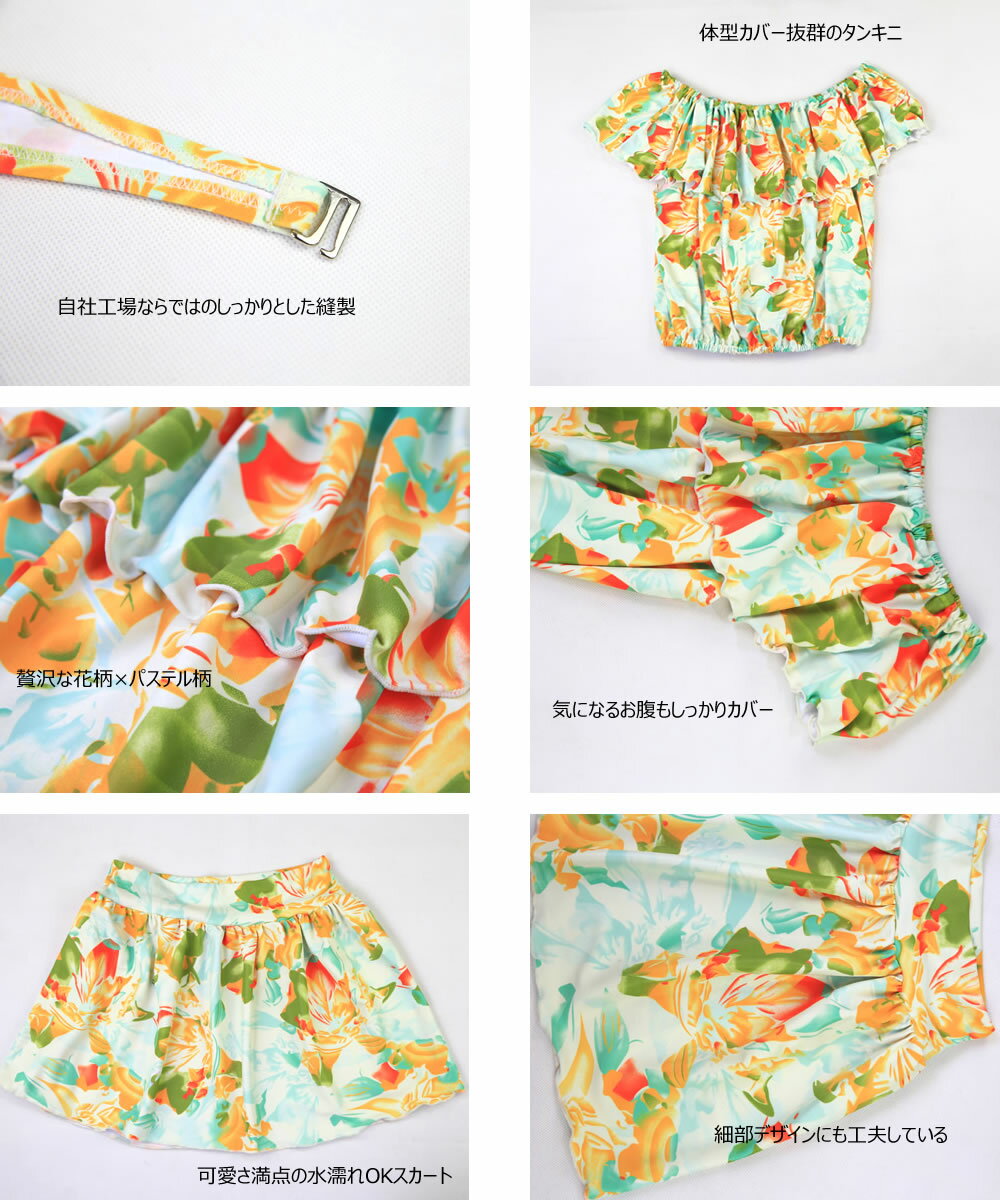 あす楽 水着 トレンド 水着 レディース タンキニ 水着 ビキニ 花柄 パステル柄 4点セット 送料無料 フリルビキニ/S/M/L/LL 通販 楽天 セパレート mizugi 大きいサイズあり