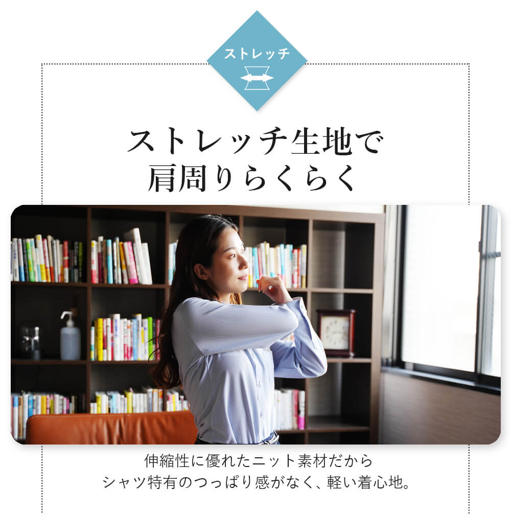 \返品交換無料/【さよならアイロン】 ノーアイロン 白シャツ レディース ビジネス ストレッチ ニットシャツ 長袖 形態安定 形状記憶 ノンアイロン アイロン不要 ストライプ スーツ ホワイト 青 ブルー おしゃれ シワにならない ブラウス かわいい [M便 1/1]