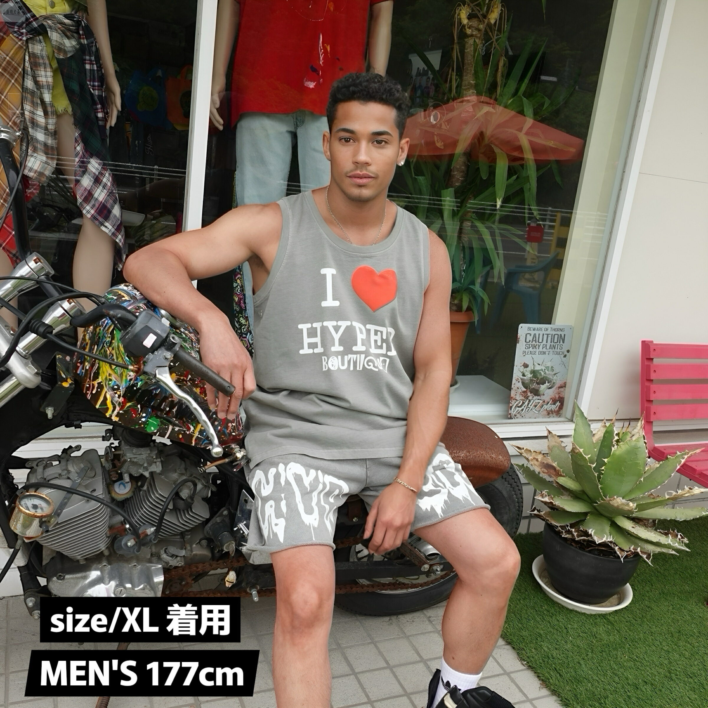 【最大¥2000 OFFクーポン配布中!!】《数量限定 》"I LOVE HYPER"TANK TOP メンズ レディース ストリート オーバーサイズ BLACK/GRAY size M.L.XL