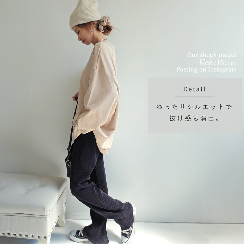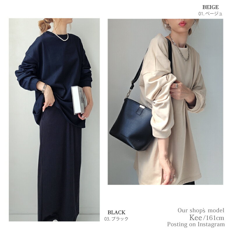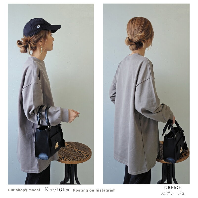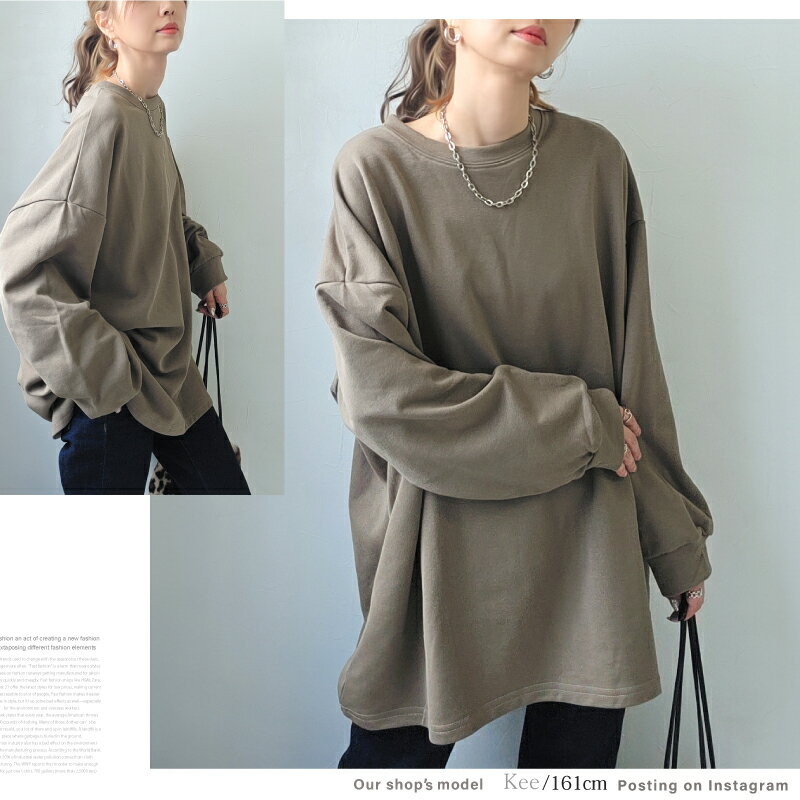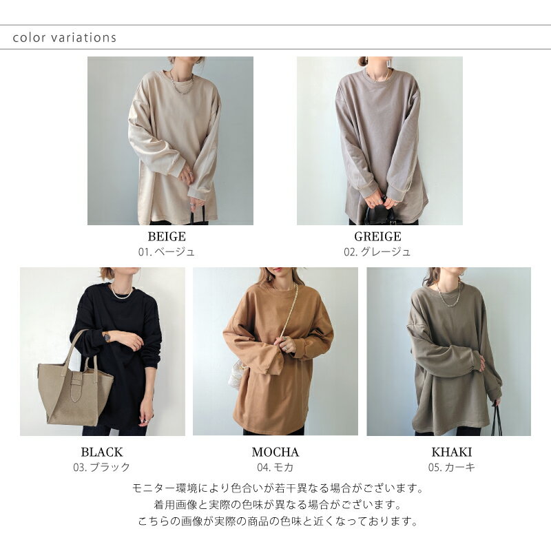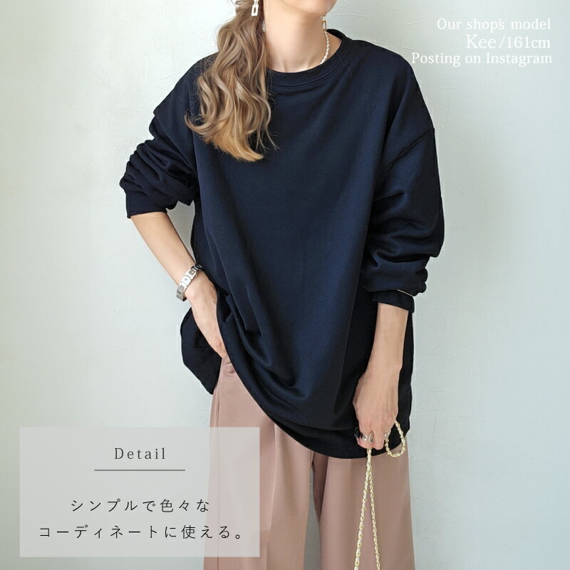 きれいめ ゆったり スウェット レディース プルオーバー 袖 リブ 長袖 薄手 M L [ロング トレーナー ビッグシルエット 大きいサイズ 抜け感 アースカラー ゆるシルエット 春 秋 冬 シンプル スエット カジュアル リラックス ルーム ウェア おしゃれ 可愛い 20 30 40 代]