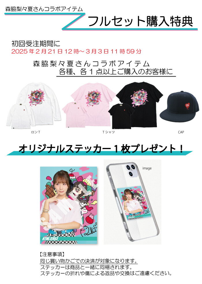 【3月下旬発送予定】エイチティエムエル ゼロスリー HTML ZERO3 ロンT Tシャツ 長袖 メンズ 森脇梨々夏 リリスイーツ コラボ ( HTML ZERO3×森脇梨々夏 Ririsweets L/S Tee ティーシャツ T-SHIRTS カットソー ロング ロンティー 長袖Tシャツ トップス HTML-T623 )