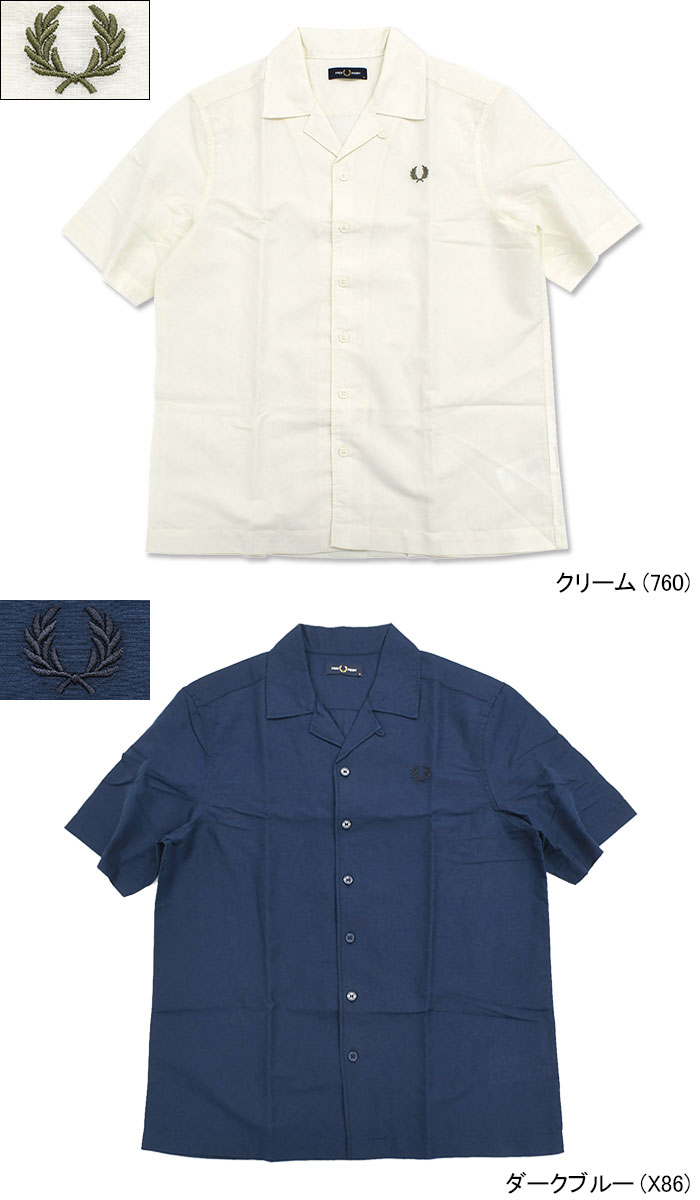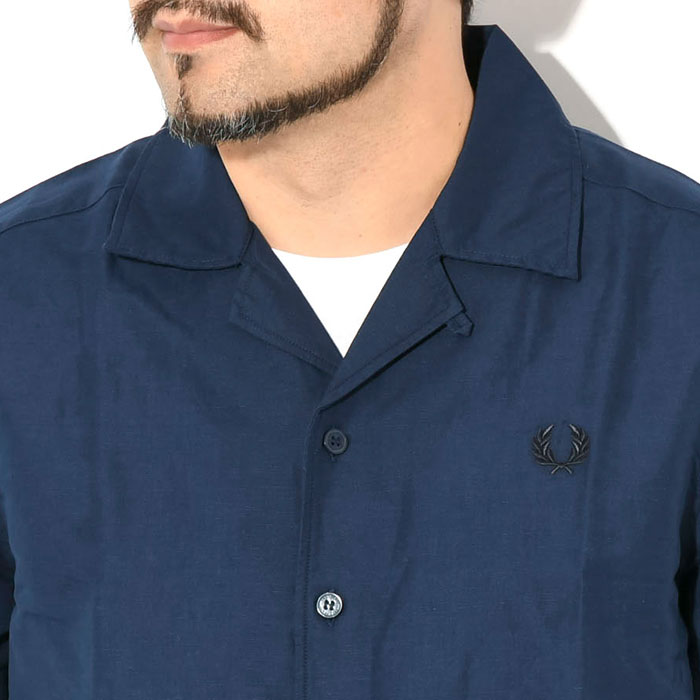 フレッドペリー FRED PERRY シャツ 半袖 メンズ リネン ブレンド リビア カラー ( FREDPERRY M9894 Linen Blend Revere Collar S/S Shirt オープンカラーシャツ トップス フレッド ペリー フレッド・ペリー ) ice field icefield