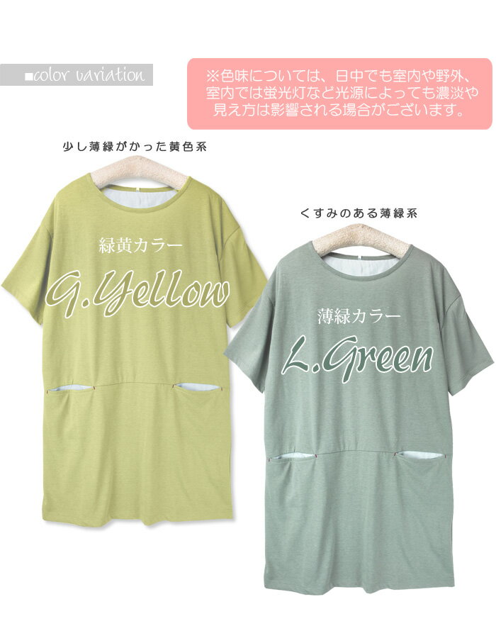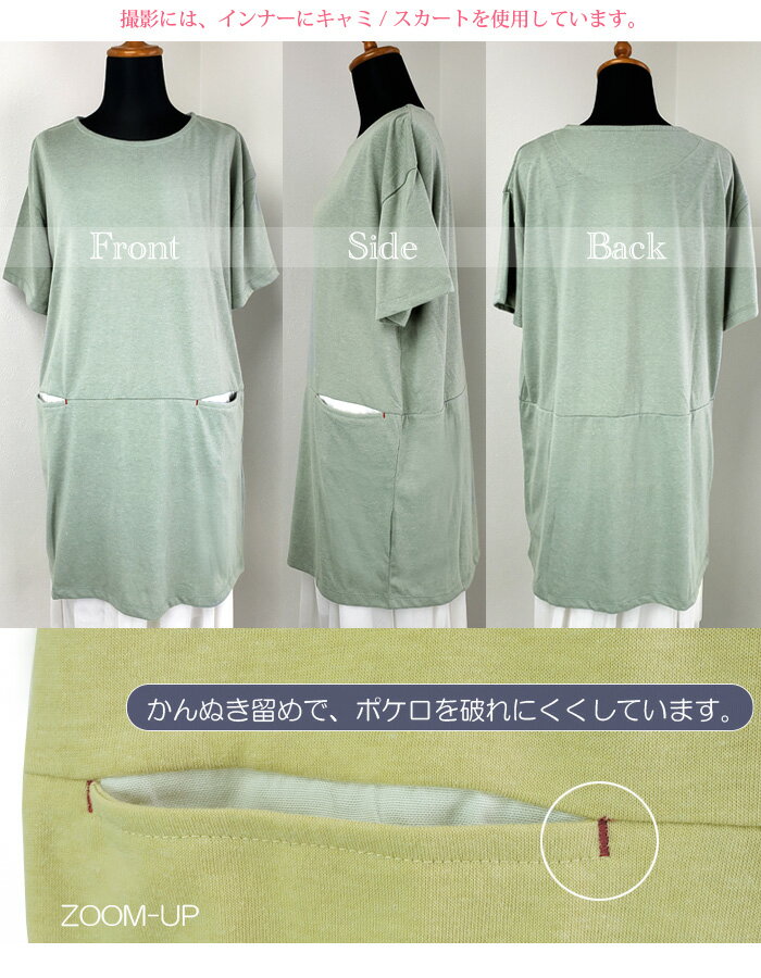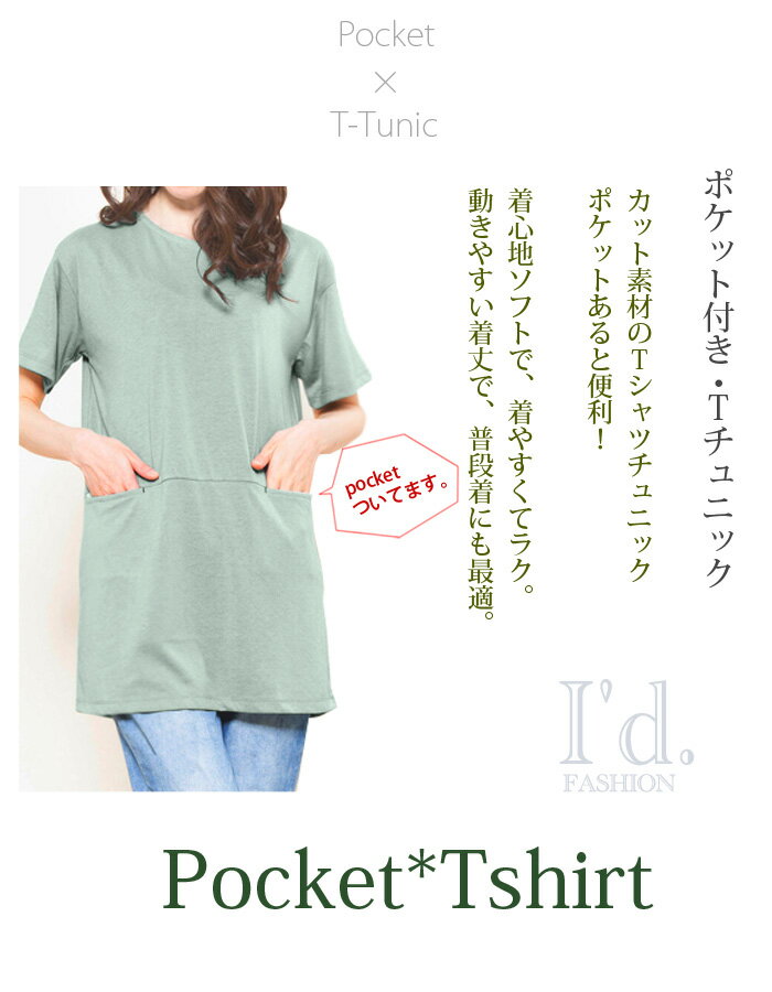 【メール便_送料無料】綿混 身幅ゆったり 半袖 ポケット付き ゆる Tシャツ チュニック カットソー 無地 ワイド幅 ロングTシャツ 夏 涼しい ビッグ 大きいサイズ Tシャツチュニック チュニックワンピ L LL レディース〔I'd.〕【3687】*