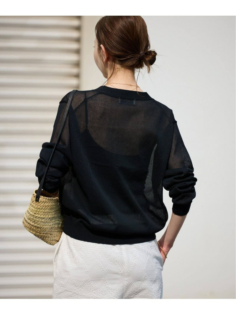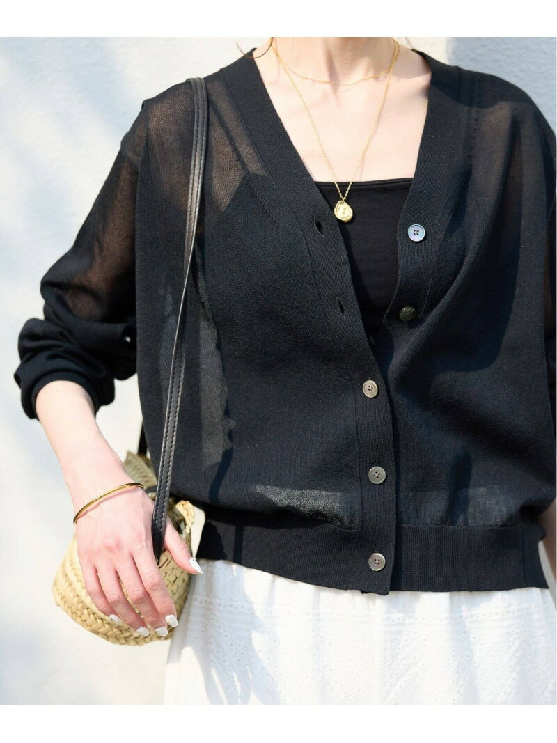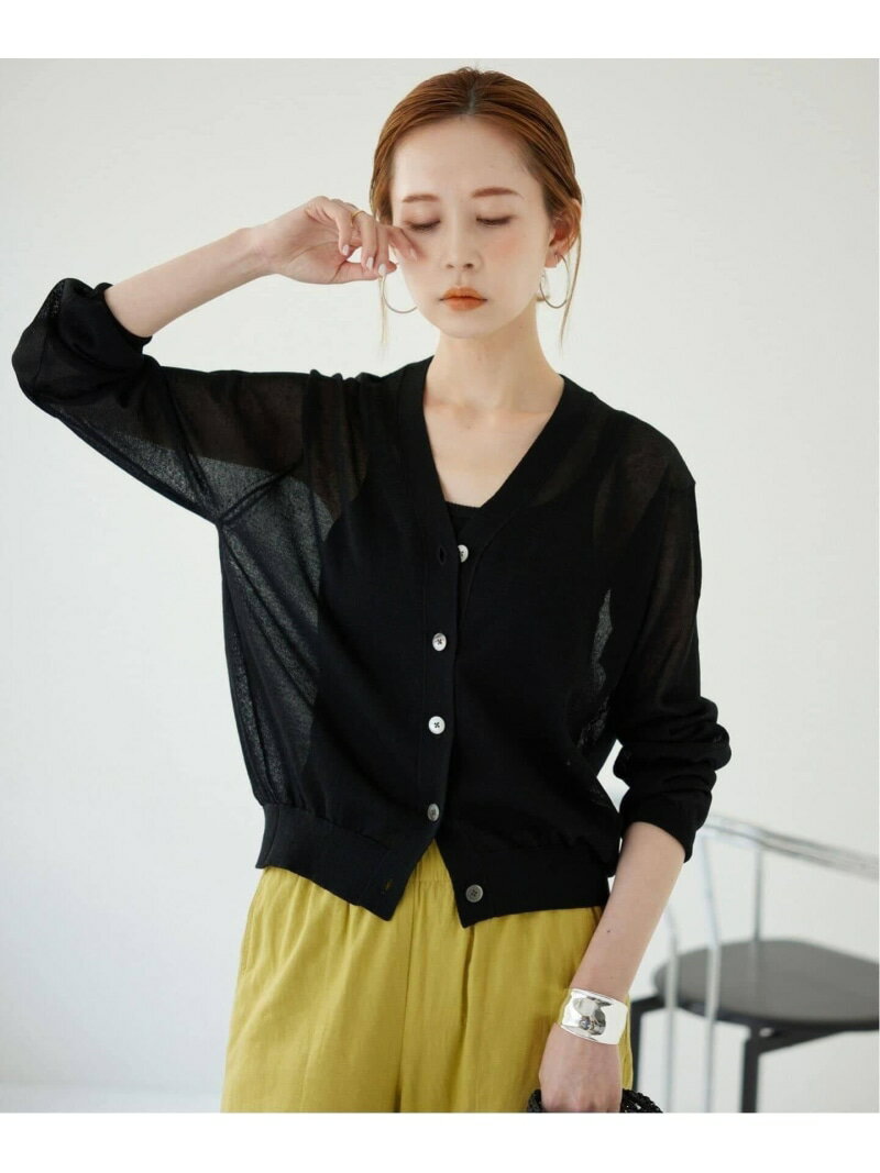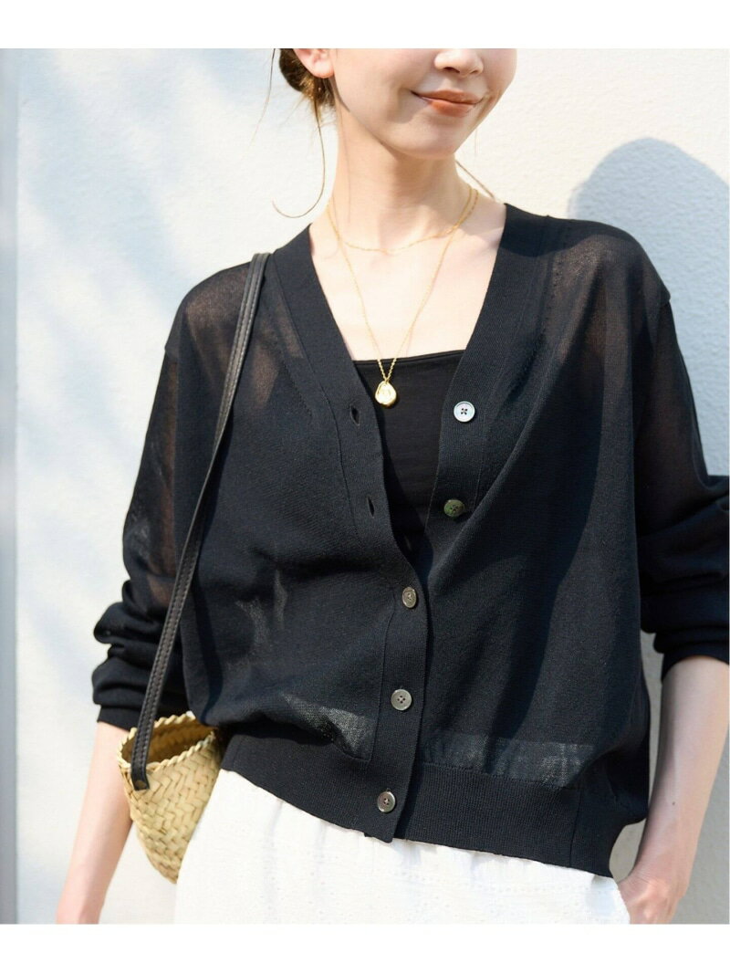 《追加予約》リネン混シアーカーディガン SLOBE IENA スローブ イエナ トップス カーディガン ブラック ブルー ホワイト【先行予約】*【送料無料】[Rakuten Fashion]