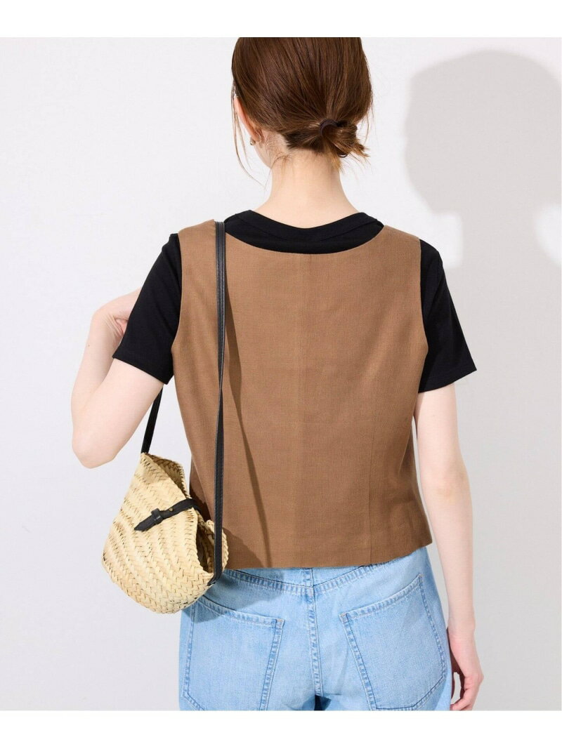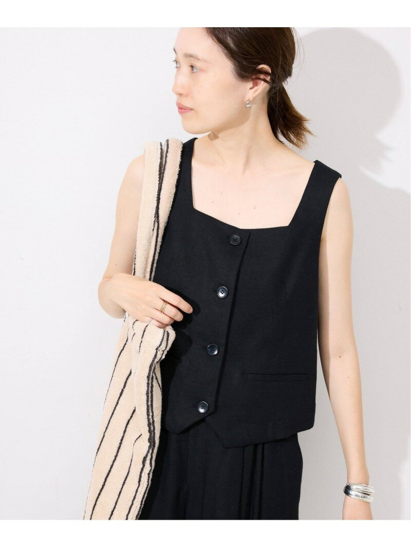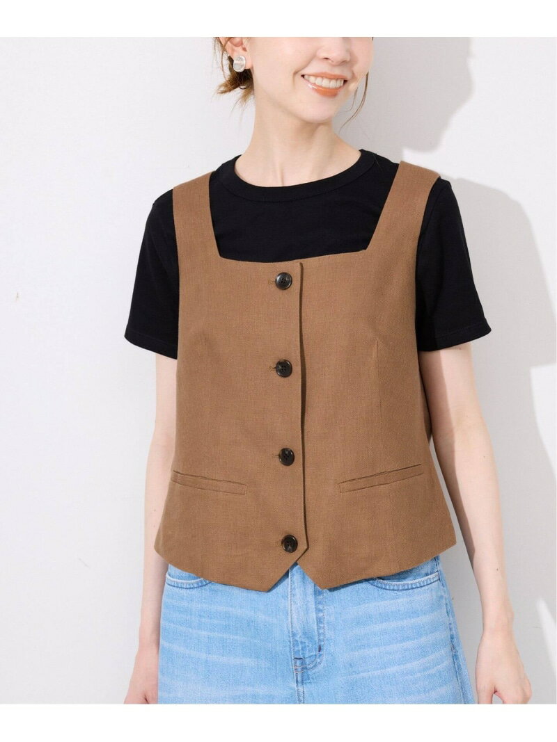 リネン混スクエアジレ SLOBE IENA スローブ イエナ トップス ベスト・ジレ ブラウン ブラック【送料無料】[Rakuten Fashion]