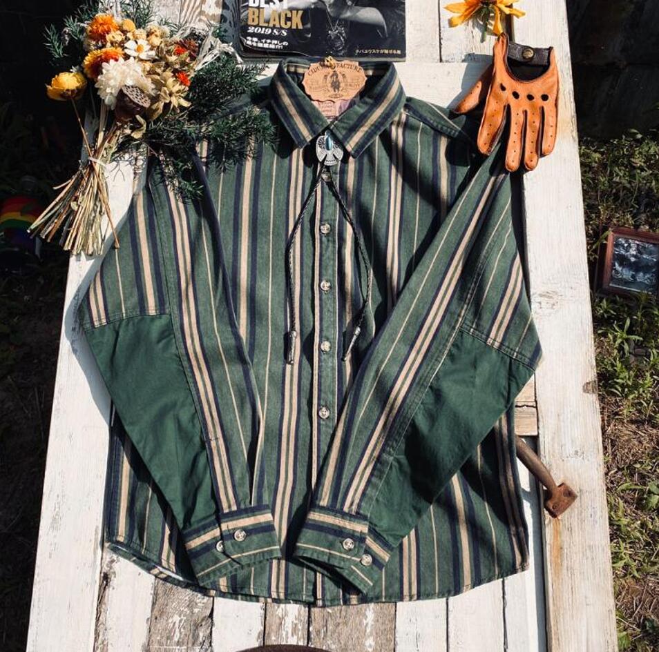 ヴィンテージ 高品質 かっこいい ボーダー ストライプ柄 コットン100% 長袖ブラウスシャツ ダンガリーシャツ アメカジ