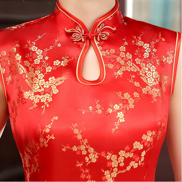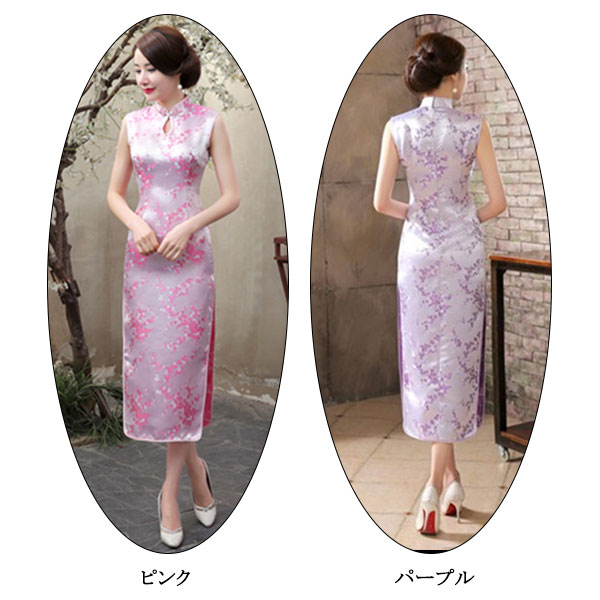 チャイナドレス ノースリーブ ロング パーティードレス チャイナ服 梅柄 刺繍 コスプレ 衣装 セクシー China Dress 1024