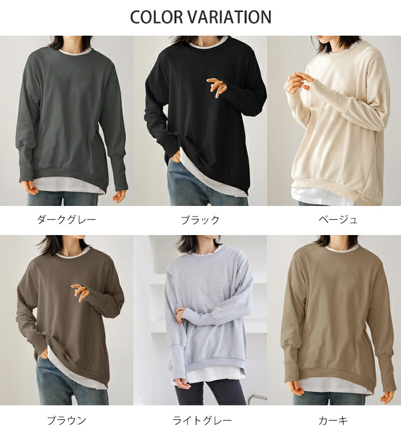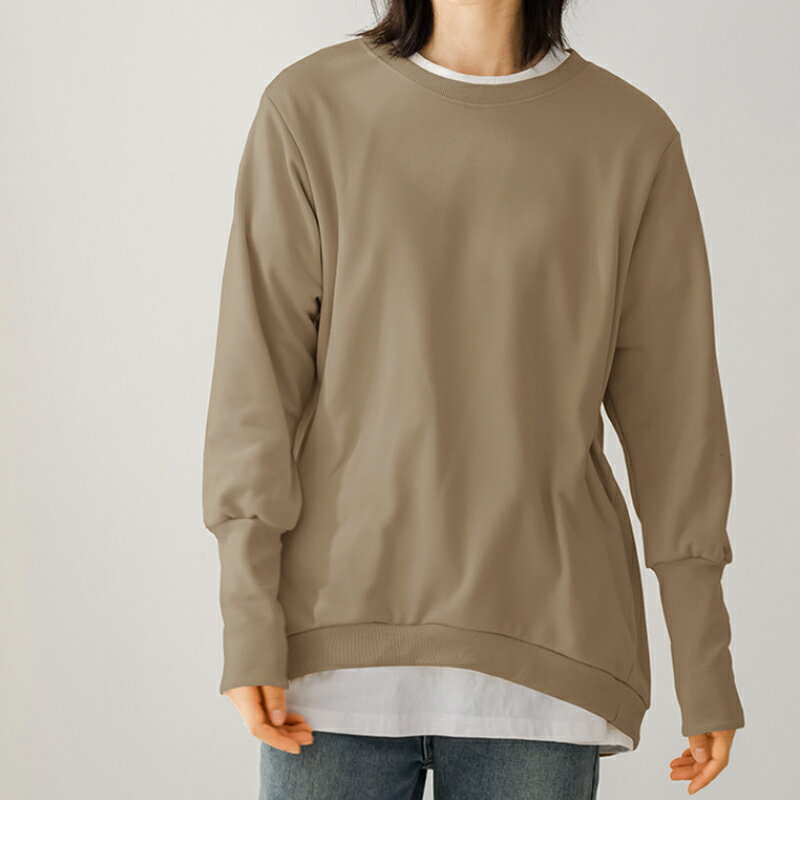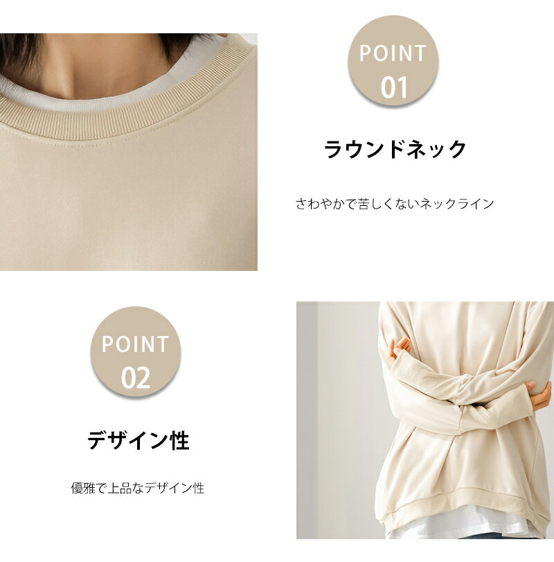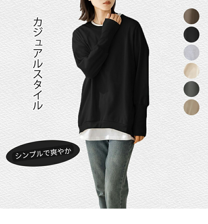 トレーナー レディース スウェット リブ長 大きいサイズ シンプル 長袖 ルームウェア 秋冬 オシャレ 楽ちん ラフ カジュアル 送料無料