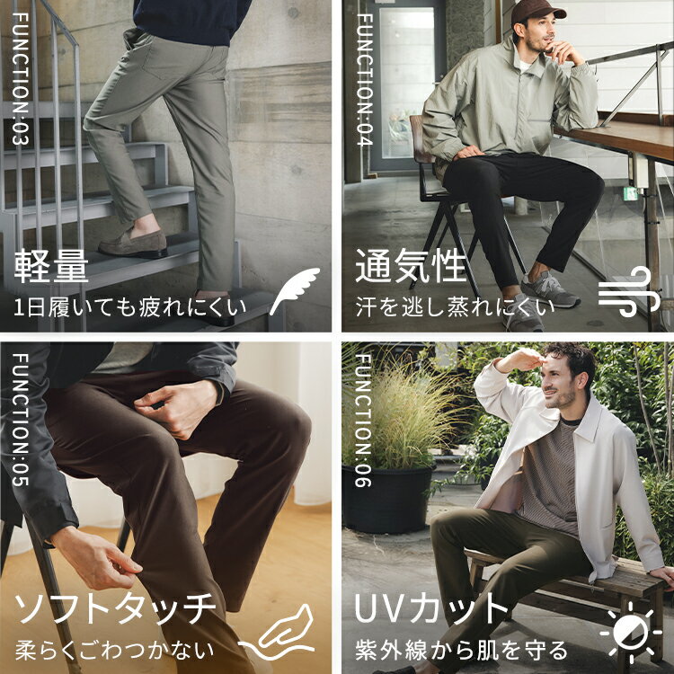 【10日(日)~11日(月)11:59/お買い得クーポンあり】ハイストレッチパンツ ストレート テーパード メンズ ズボン ボトムス ジョガーパンツ T800 蓄熱保温 乾燥機OK 軽量 通気 UVカット 作業着 ビジネス 大きいサイズ 秋 冬 オールシーズン