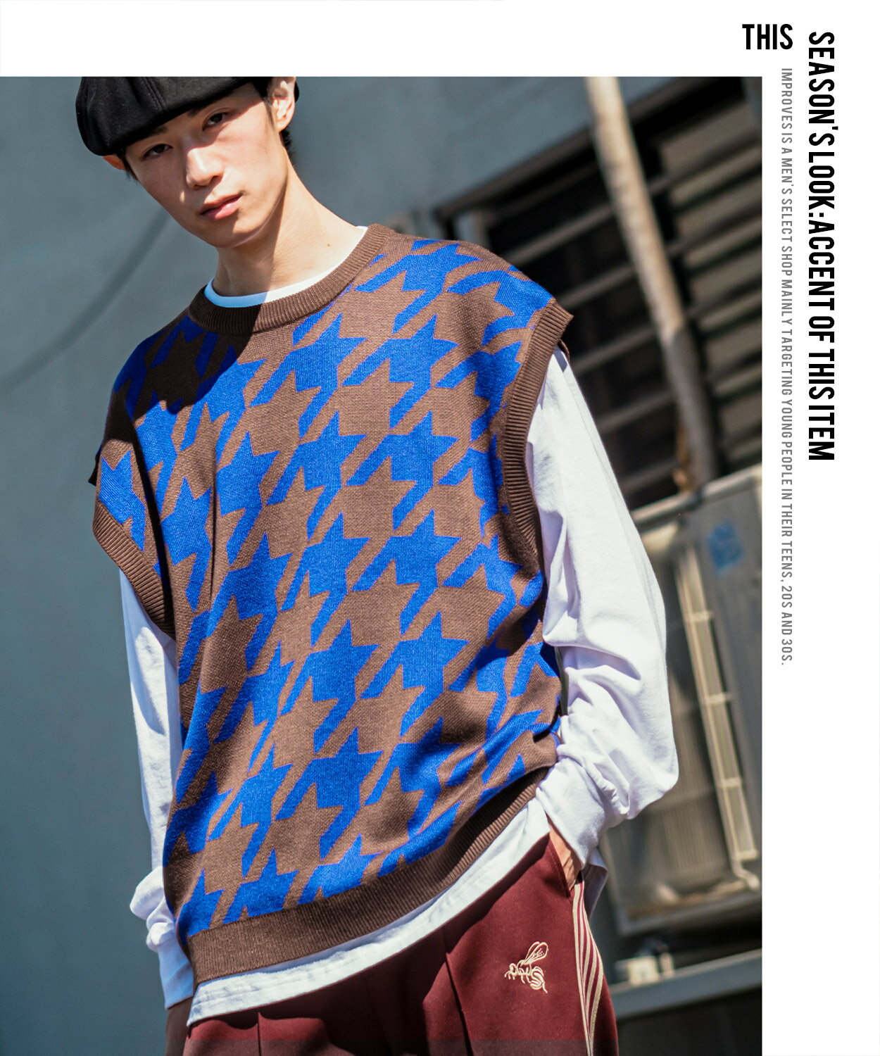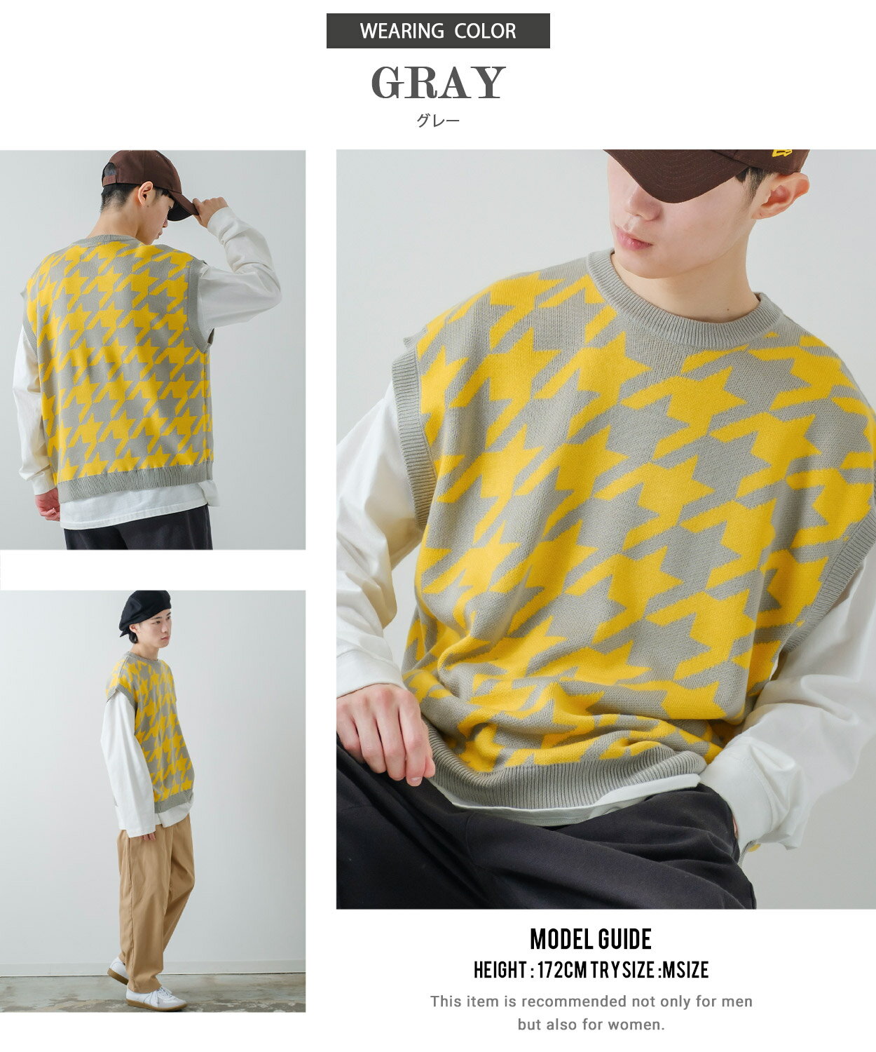 【SALE / 37%OFF】ニットベスト メンズ レディース 千鳥格子 ハウンドトゥース チェック柄 カラーニット オーバーサイズ 大きめ きれいめカジュアル モード ストリート 韓国ファッション ホワイト ブラック グリーン ブラウン グレー ラベンダー ブルー